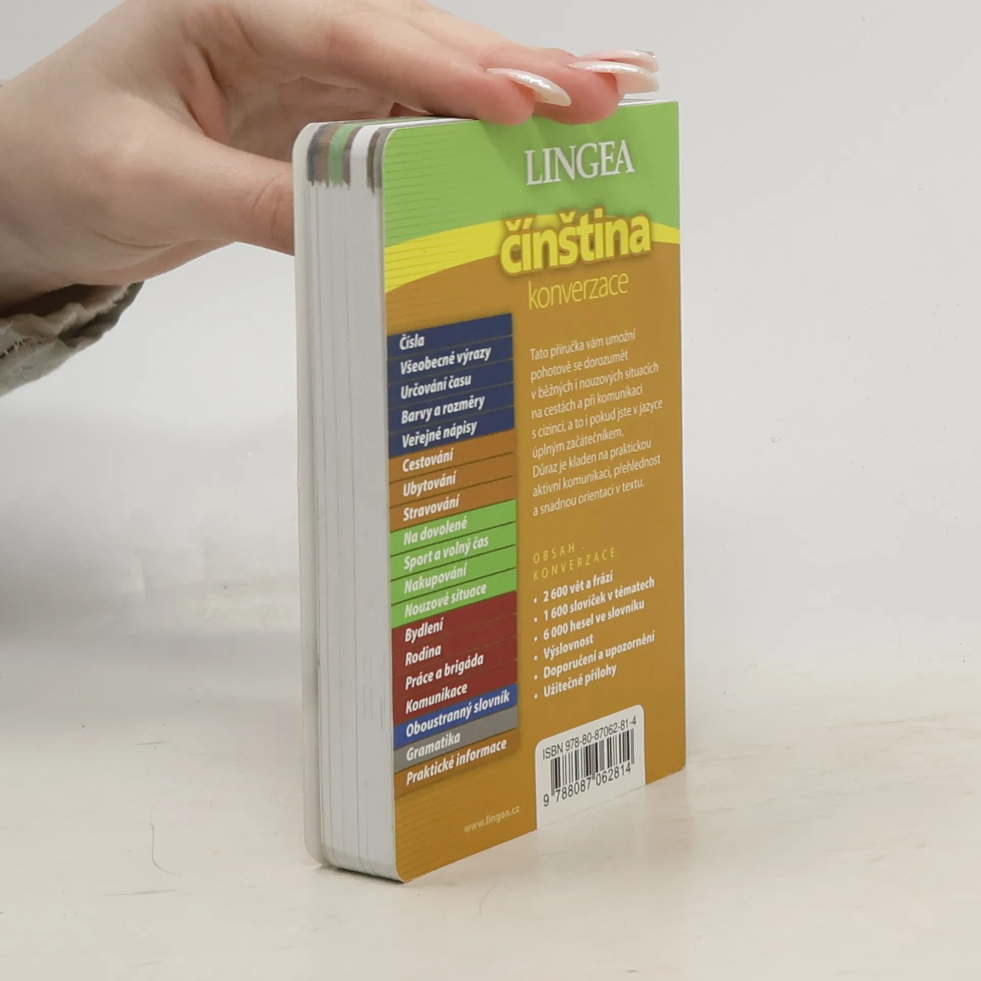 Unikátní konverzace se slovníkem a gramatikou. Přehledné členění do tematických bloků umožňuje rychlou orientaci v textu, současně usnadňuje i dorozumění se v běžných i nouzových situacích na cestách a při komunikaci s cizinci, a to i úplným začátečníkům. Součástí této příručky je také slovník a stručný přehled gramatiky.