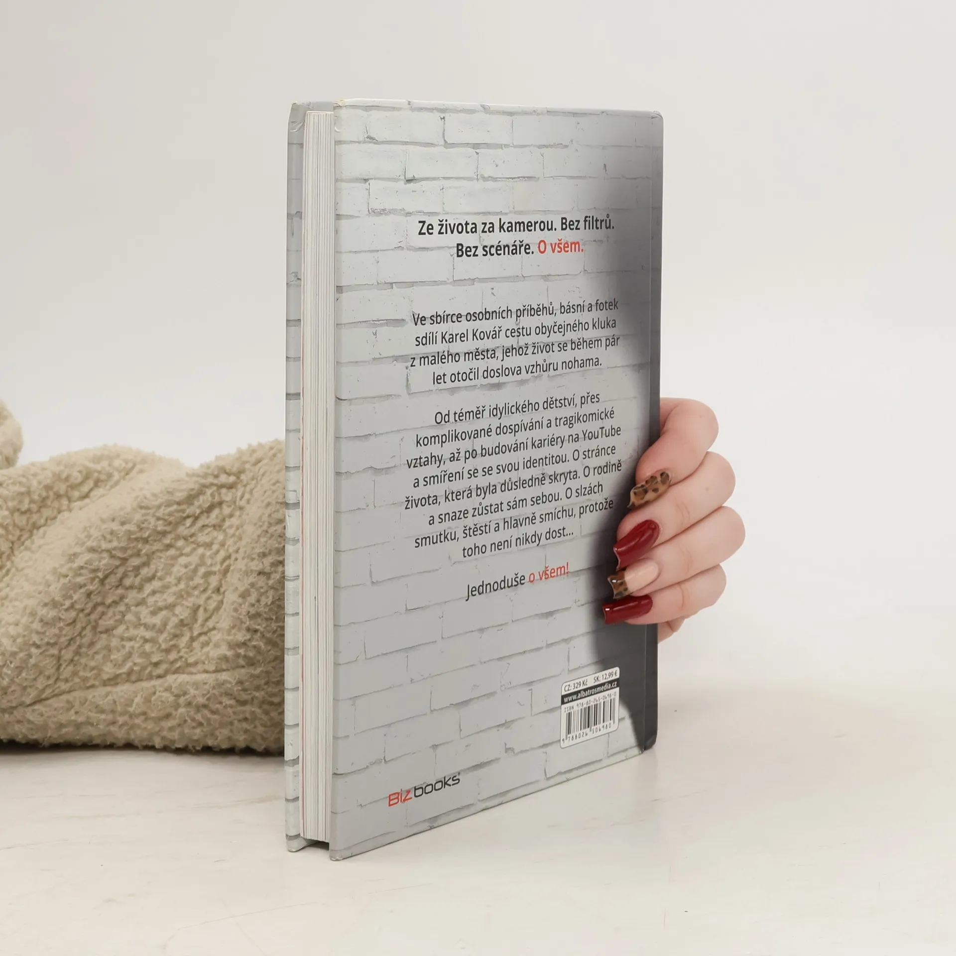 Bez filtrů. Bez scénáře. O všem. Ve sbírce osobních příběhů, básní a fotek sdílí Karel Kovář cestu obyčejného kluka z malého města, jehož život se během pár let otočil doslova vzhůru nohama. Od téměř idylického dětství, přes komplikované dospívání a tragikomické vztahy, až po budování kariéry na YouTube a smíření se se svou identitou. O stránce života, která byla důsledně skryta. O rodině a snaze zůstat sám sebou. O slzách smutku, štěstí a hlavně smíchu, protože toho není nikdy dost–… Jednoduše o všem!