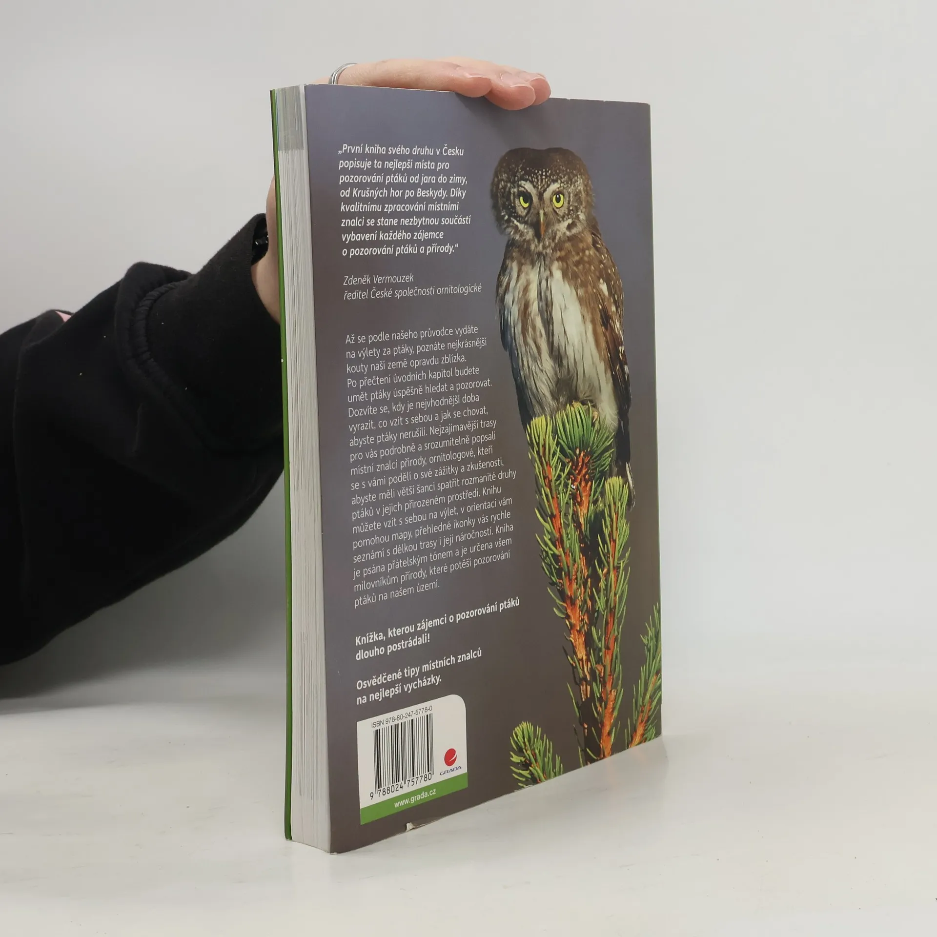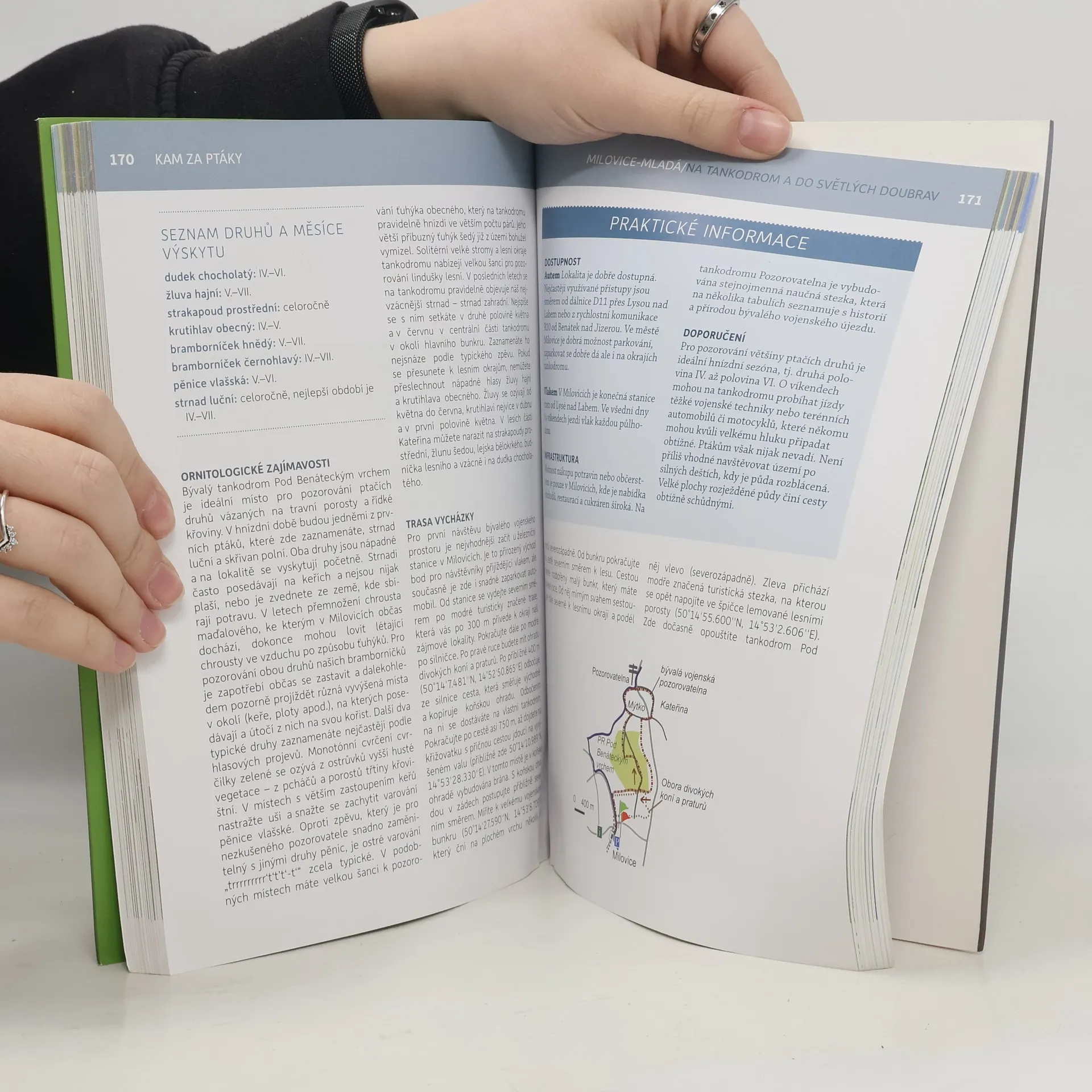 Díky kapesnímu formátu můžete vzít knihu s sebou na výlet, v orientaci vám pomohou mapy, přehledné ikonky vás rychle seznámí s délkou trasy, její náročností a vhodností např. pro dětské kočárky nebo zdravotně handicapované milovníky přírody. Po přečtení úvodních kapitol budete umět ptáky úspěšně hledat a pozorovat je v jejich přirozeném prostředí. A až se podle průvodce vydáte na výlety za ptáky, poznáte nejkrásnější kouty naší země opravdu zblízka. Dozvíte se, kdy je nejvhodnější doba vyrazit, co vzít s sebou a jak se chovat, abyste ptáky nerušili. Spolehlivě nejzajímavější trasy pro vás popsali místní znalci přírody, ornitologové, kteří se s vámi podělí o své zážitky a zkušenosti. Kniha je psána přátelským tónem a je určena všem milovníkům přírody bez ohledu na jejich znalosti a zkušenosti, kteří by rádi pozorovali ptáky na našem území. Poslouží i pedagogům, vedoucím kroužků, turistům či rodičům při plánování výletu do přírody.