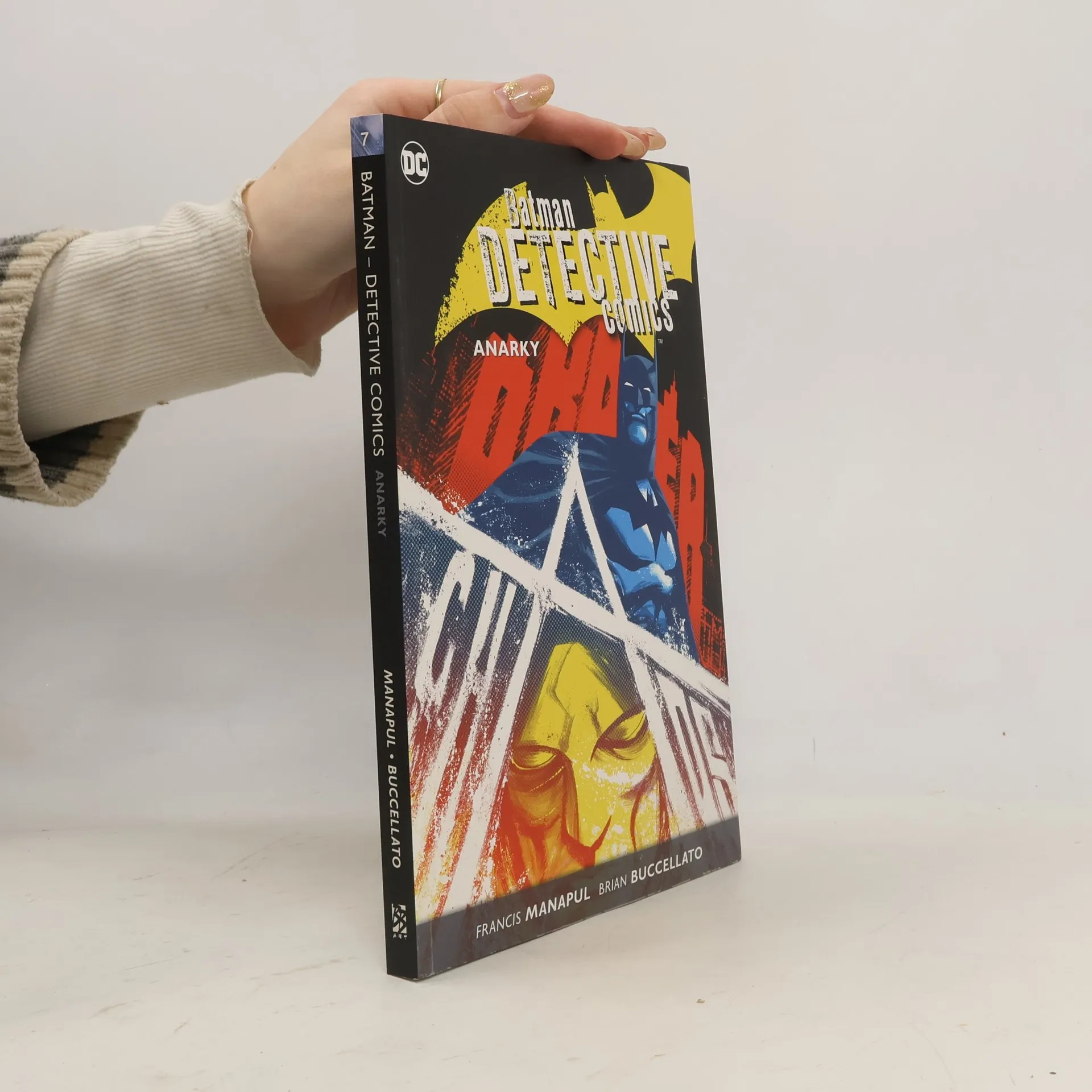 V GOTHAMU VLÁDNE ANARKY! Letadlo na gothamském mezinárodním letišti během přistávání havaruje. Posádka a cestující uvnitř ale působí, jako by byli mrtví už několik let; zdá se, že jejich těla jsou v rozkladu. To, nač zemřeli, se teď šíří po terminálu. Pokud Batman nevypátrá, kdo je za tento biologický útok zodpovědný, bude obětí mnohem víc. A po záchraně letiště čeká Gotham City další biologický útok, tentokrát od samotného Jokera. Lonnie Machin – počítačový génius dříve známý jako Moneyspider – se postaví vražednému šílenství, jež zachvátilo město, aby zachránil svou matku. A nakonec se vydáme do pět let vzdálené budoucnosti, kdy se Batman musí spojit s padouchem Riddlerem, aby Calendar Manovi společně zabránili zopakovat Rok nula. Kritiky oceňovaný kreativní tým komiksu FLASH – FRANCIS MANAPUL a BRIAN BUCCELLATO – přichází s Batmanovými příběhy. Jejich spolupracovníky jsou BENJAMIN PERCY (GREEN ARROW), JOHN PAUL LEON (DMZ) a další a výsledkem je DETECTIVE COMICS: ANARKY! Tento soubor obsahuje sešity DETECTIVE COMICS č. 35–40, DETECTIVE COMICS: ENDGAME č. 1 a DETECTIVE COMICS: FUTURE END č. 1.