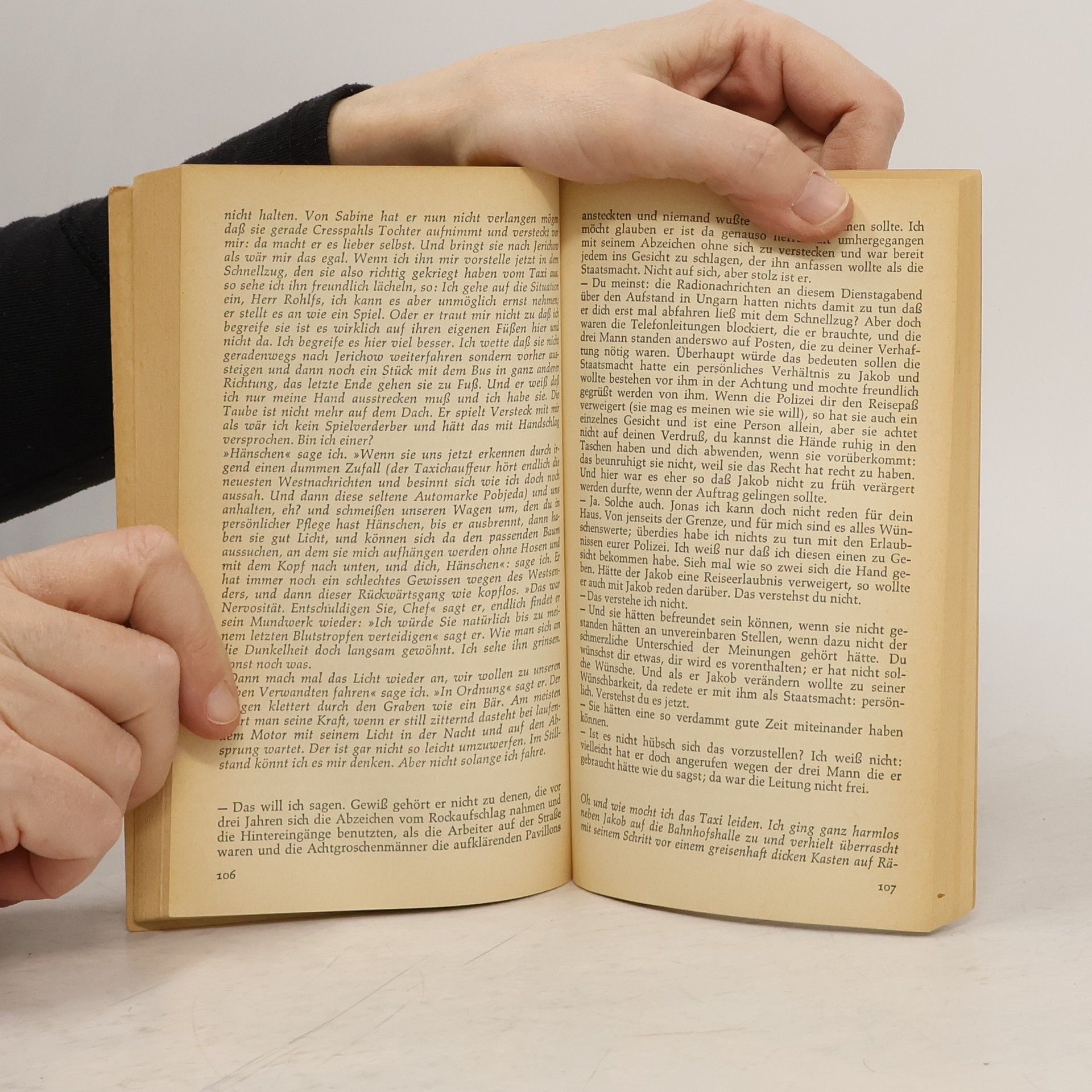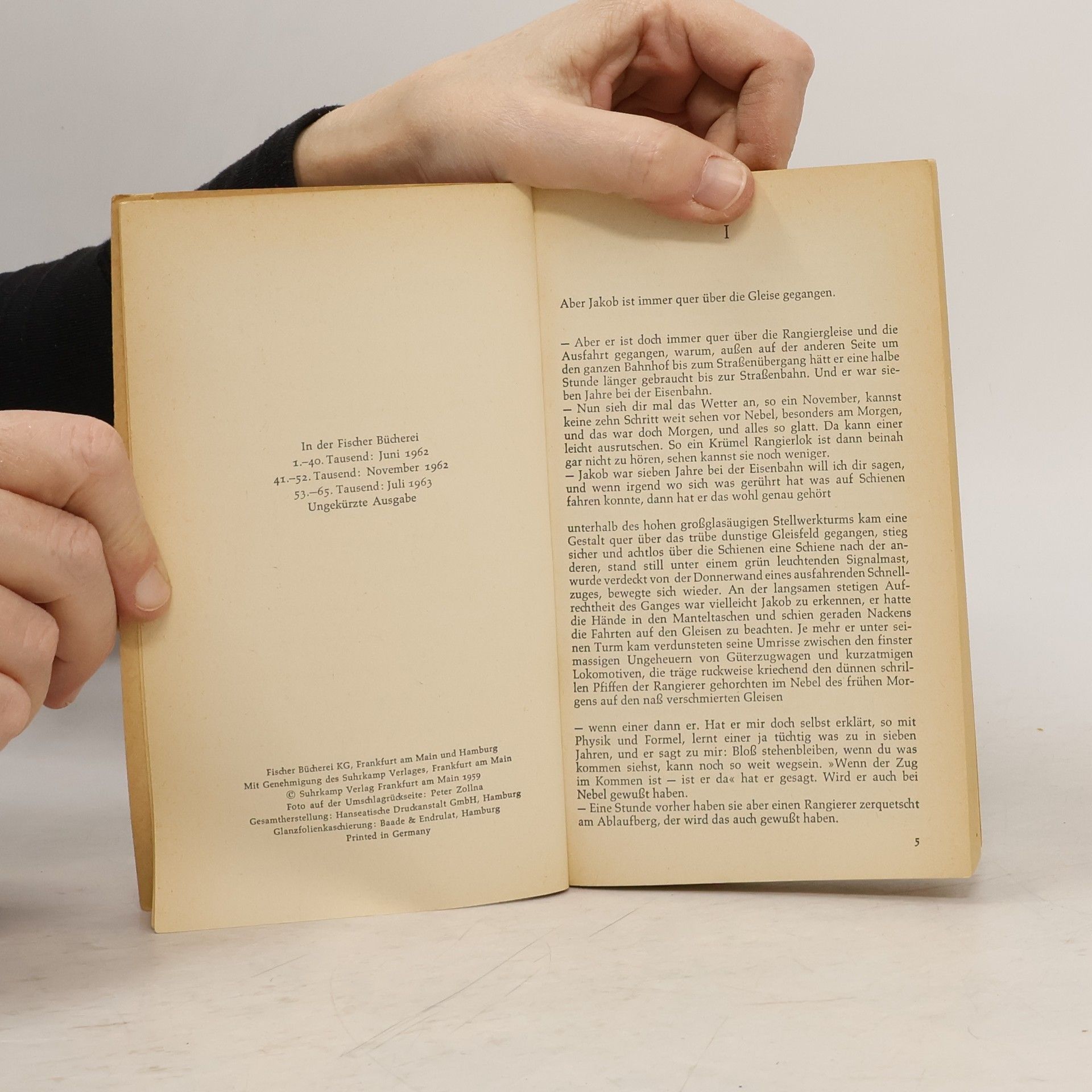 Uwe Johnsons erster Roman ist aufgrund seiner komplexen Erzählstruktur eine Herausforderung und thematisiert die deutsche Teilung, was den Autor aus Ostdeutschland bekannt machte. Johnsons Mutter arbeitete bei der Reichsbahn, und nach ihrer Flucht konnte er weiterhin in der Bahnkantine essen, was ihm Einblicke in die Arbeitswelt gab. Zwischen Februar und Dezember 1958 schrieb er das Buch, das ursprünglich „Guten Tag, Jakob“ heißen sollte. Die Geschichte folgt Jakob Abs, einem 28-jährigen Beamten der DDR-Reichsbahn in Dresden, der im November 1956 auf dem Rangiergelände von einer Lok überfahren wird. Ob sein Tod ein Unfall, Selbstmord oder ein geplanter Mord ist, bleibt unklar. Jakob, der loyal zur DDR ist, wird von der Spionageabwehr überwacht, seit seine Mutter und seine Freundin Gesine in den Westen geflohen sind. Die Handlung spielt in einer kurzen Tauwetter-Periode nach dem Ungarn-Aufstand, in der Jakob die sowjetischen Militärtransporte bemerkt. Gesine, unter Druck von Abwehr-Hauptmann Rohlfs, besucht ihren Vater und Jakob. Rohlfs verhaftet den regimekritischen Dr. Blach, während er das Paar beobachtet. Jakob reist in den Westen, kehrt jedoch freiwillig zurück und stirbt am selben Tag. Die Erzählweise ist nicht linear, sondern analytisch, mit Gesprächen und inneren Monologen, die dem Leser die Rekonstruktion von Jakobs Leben ermöglichen. Die Sprache spiegelt plattdeutsche Einflüsse wider und verleiht dem Werk eine über