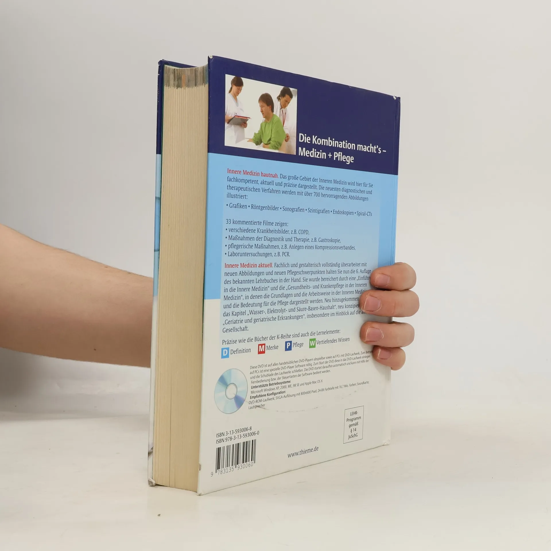 Innere Medizin aktuell. Fachlich und gestalterisch vollständig überarbeitet mit neuen Abbildungen und neuen Pflegeschwerpunkten halten Sie nun die 6. Auflage des bekannten Lehrbuches in der Hand. Sie wurde bereichert durch eine „Einführung in die Innere Medizin“ und die „Gesundheits- und Krankenpflege in der Inneren Medizin“, in denen die Grundlagenund die Arbeitsweise in der Inneren Medizin und die Bedeutung für die Pflege dargestellt werden. Neu hinzugekommen ist auch das Kapitel „Wasser-, Elektrolyt- und Säure-Basen-Haushalt“, neu konzipiert wurde „Geriatrie und geriatrische Erkrankungen“, insbesondere im Hinblick auf die alternde Gesellschaft. Präzise wie die Bücher der K-Reihe sind auch die Lernelemente: Definition Vertiefendes Wissen Pflege: Merke D W P M