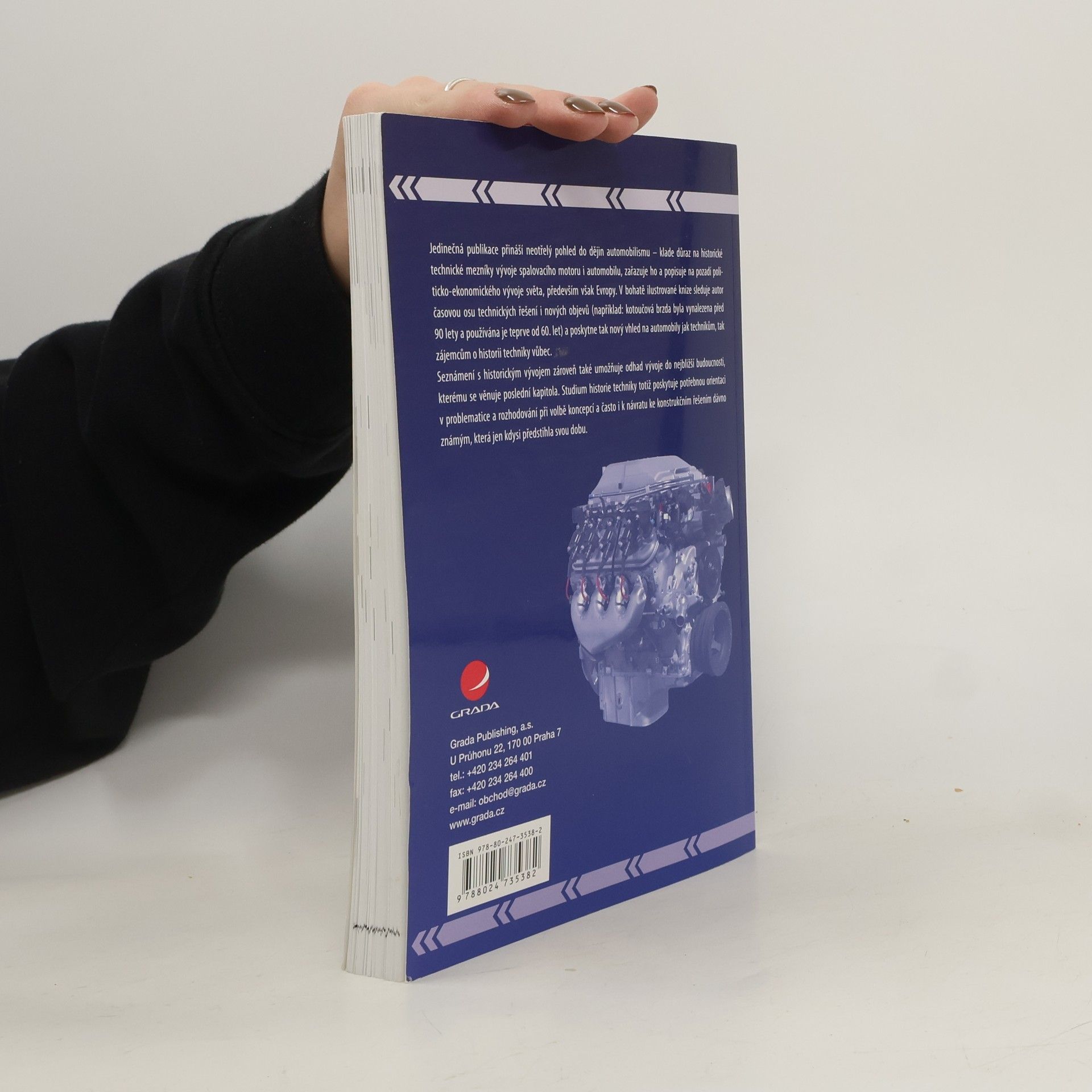 Jedinečná publikace přináší neotřelý pohled do dějin automobilismu - klade důraz na historické a technické mezníky vývoje spalovacího motoru i automobilu, který popisuje na pozadí a v kontextu politicko-ekonomického vývoje světa, především však Evropy. V bohatě ilustrované knize sleduje autor chronologický vývoj technických řešení i osudy nových objevů (třeba kotoučová brzda byla vynalezena už před 90 lety, používá se však teprve od 60. let 20. století) a poskytne tak nový pohled na automobily jak technikům, tak zájemcům o historii techniky vůbec. Seznámení s historickým vývojem zároveň umožňuje odhad vývoje v nejbližší budoucnosti, kterému se věnuje poslední kapitola. Studium historie techniky totiž poskytuje potřebnou orientaci v problematice a pomáhá při rozhodování o volbě nových koncepcí, které často mohou znamenat i návrat k dávno známým konstrukčním řešením, jež jen kdysi předstihla svou dobu.