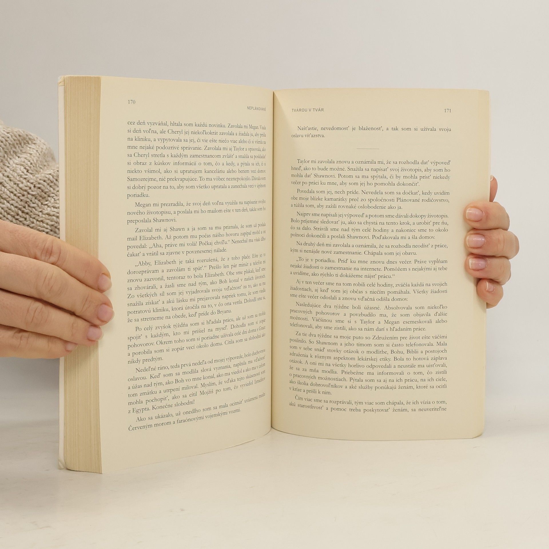 Autorka, ako študentka psychológie, sa rozhodla pomáhať ženám a svoju túžbu naplnila ako riaditeľka kliniky Plánované rodičovstvo. Po ôsmich rokoch, keď prvýkrát asistovala pri umelom potrate, si uvedomila tragédiu situácie a tlak na zvyšovanie počtu potratov pre vyššie tržby. Rozhodla sa okamžite odísť a pripojila sa k svojim predchádzajúcim odporcom, ktorí sa modlili za životy nenarodených detí. Jej príbeh je o sile modlitieb a obrátení, pričom vyjadruje hlboké pochopenie pravdy o hodnotách života. Kniha ponúka pohľad na otázku života a smrti, najmä v kontexte počatého života, a vyzýva čitateľov na zamyslenie nad hodnotou a ochranou života už pred narodením. Autorka s odvahou a múdrosťou zdieľa svoj príbeh, ktorý rezonuje aj na Slovensku, upozorňujúc na nebezpečenstvo liberalizmu a jeho vplyv na spoločnosť. Príbeh je preplnený vďačnosťou Bohu a ľuďom, ktorí ju podporovali na ceste k pravde. Je to svedectvo o sile modlitby, bezpodmienečnej láske a hľadaní pravdy, ktorá prináša radosť a pokoj. Kniha je úprimným a dramatickým pohľadom na život a prekonávanie ťažkostí, pričom sa vyhýba ideológii a zameriava sa na autentické skúsenosti.