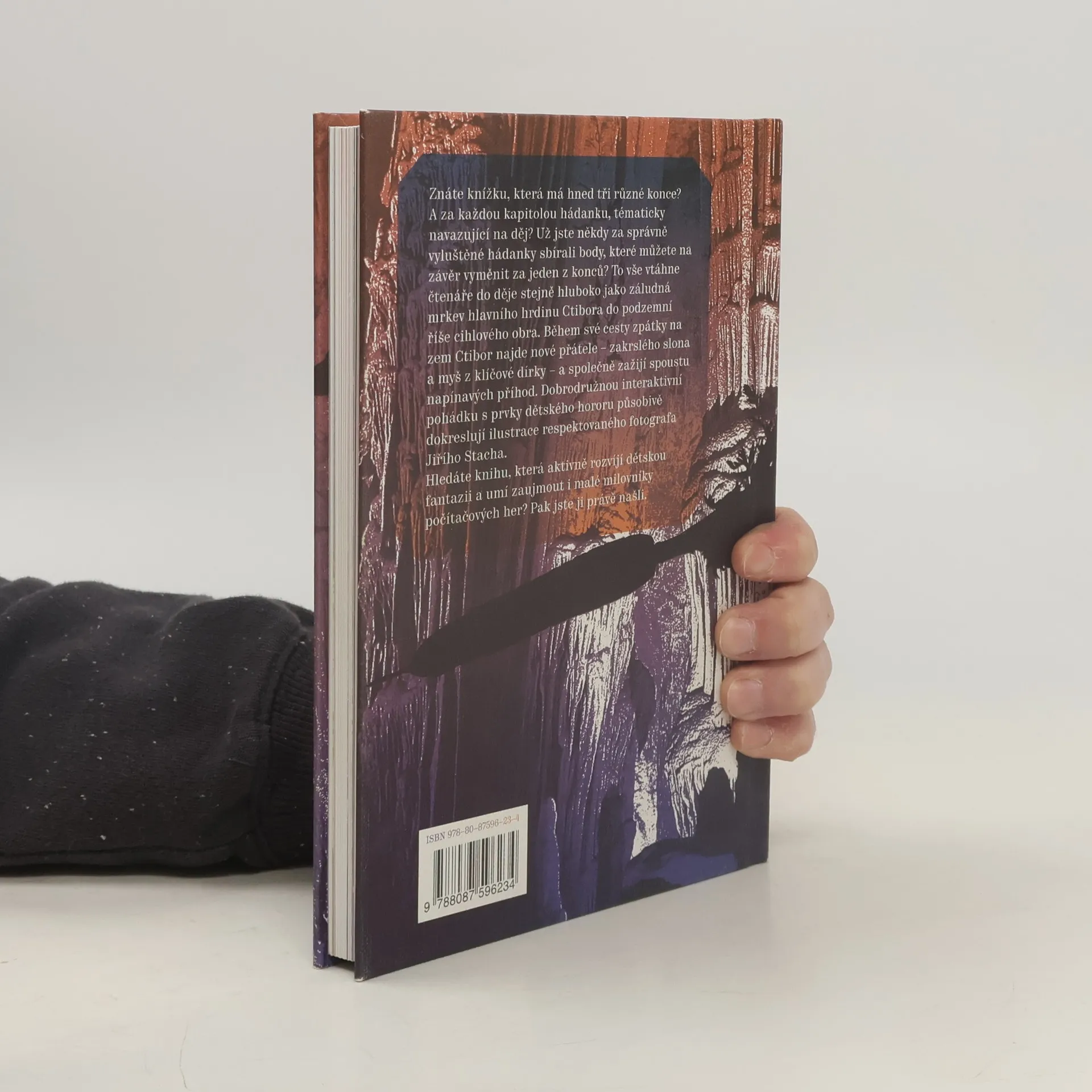 Znáte knížku, která má hned tři různé konce? A za každou kapitolou hádanku, tematicky navazující na děj? Už jste někdy za správně vyluštěné hádanky sbírali body, které můžete na závěr vyměnit za jeden z konců? To vše vtáhne čtenáře do děje stejně hluboko, jako záludná mrkev hlavního hrdinu Ctibora do podzemní říše cihlového obra. Během své cesty zpátky na zem Ctibor najde nové přátele – zakrslého žesťového slona a myš z klíčové dírky – a společně zažijí spoustu napínavých příhod. Dobrodružnou interaktivní pohádku s prvky dětského hororu působivě dokreslují ilustrace respektovaného výtvarníka, fotografa Jiřího Stacha. Hledáte knihu, která aktivně rozvíjí dětskou fantazii a umí zaujmout i malé milovníky počítačových her? Pak jste ji právě našli.
