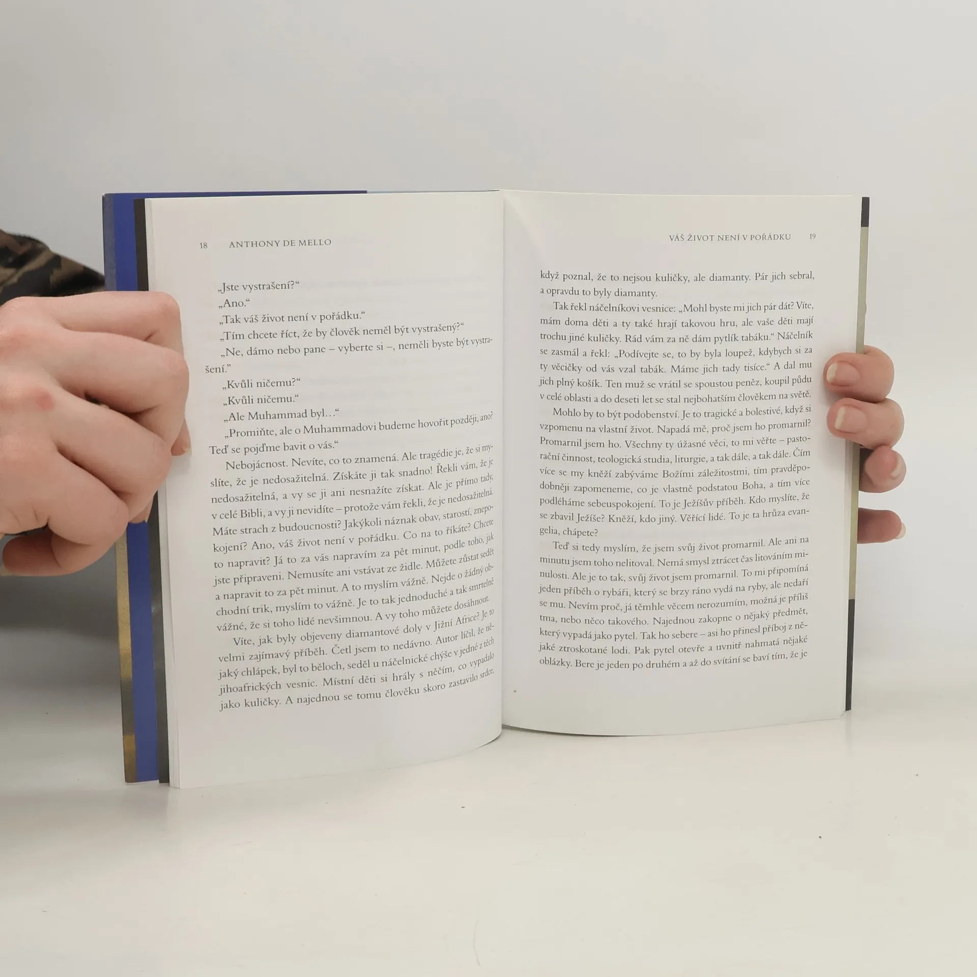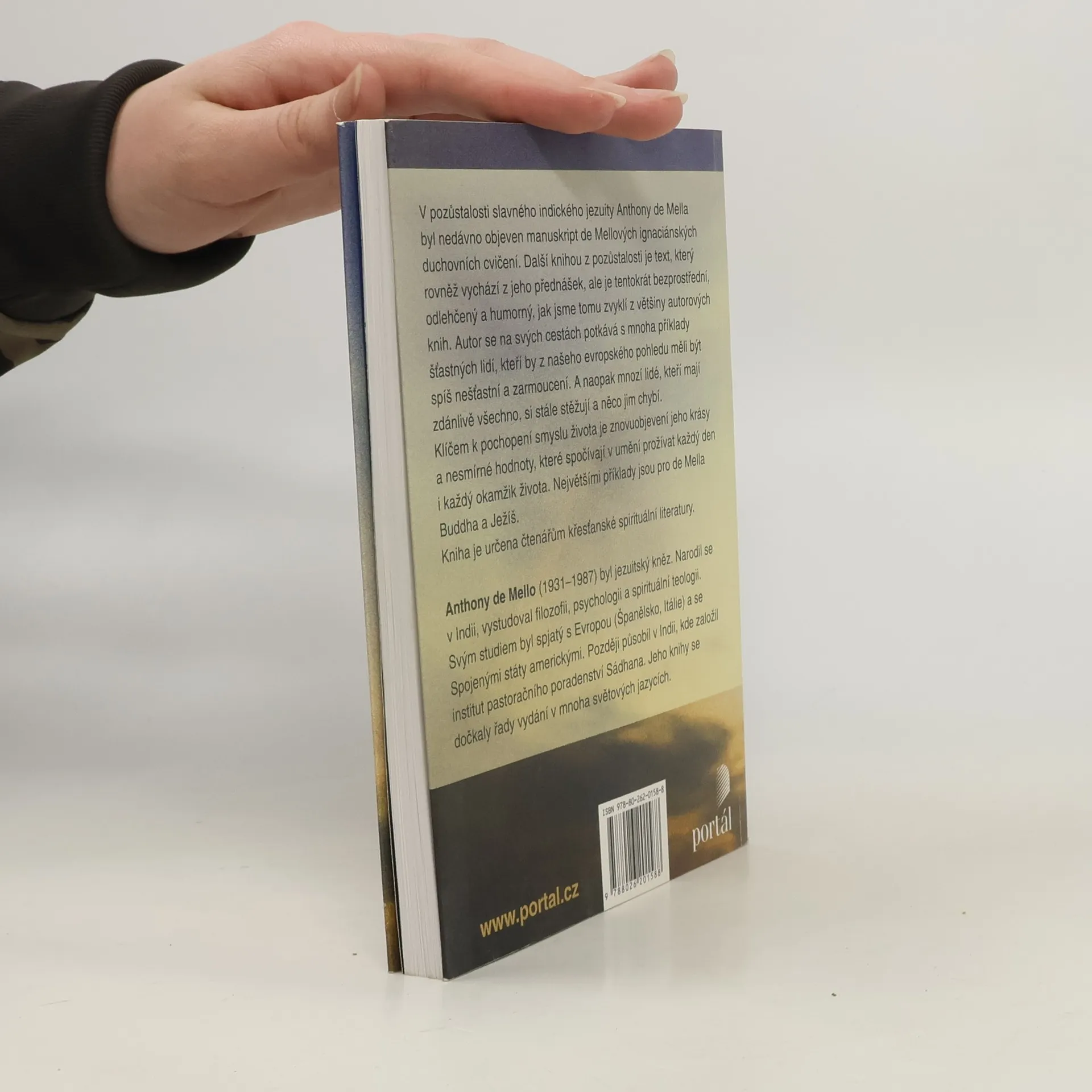 V pozůstalosti slavného indického jezuity Anthony de Mella byla nedávno objevena manuskript de Mellových ignaciánských duchovních cvičení. Dalším knihou z pozůstalosti je text, který rovněž vychází z jeho přednášek, ale je tentokrát bezprostřední, odlehčený a humorný, jak jsme tomu zvyklí z většiny autorových knih. Autor se na svých cestách potkává s mnoha příklady šťastných lidí, kteří by z našeho evropského pohledu měli být spíš nešťastní a zarmoucení. A naopak mnozí lidé, kteří mají zdánlivě všechno, si stále stěžují a něco jim chybí. Klíčem k pochopení smyslu života je znovuobjevení jeho krásy a nesmírné hodnoty, které spočívají v umění prožívat každý den i každý okamžik života naplněni Bohem. Jedním z vrcholných příkladů jsou pro de Mella Buddha a Ježíš. Kniha je určena čtenářům křesťanské spirituální literatury.