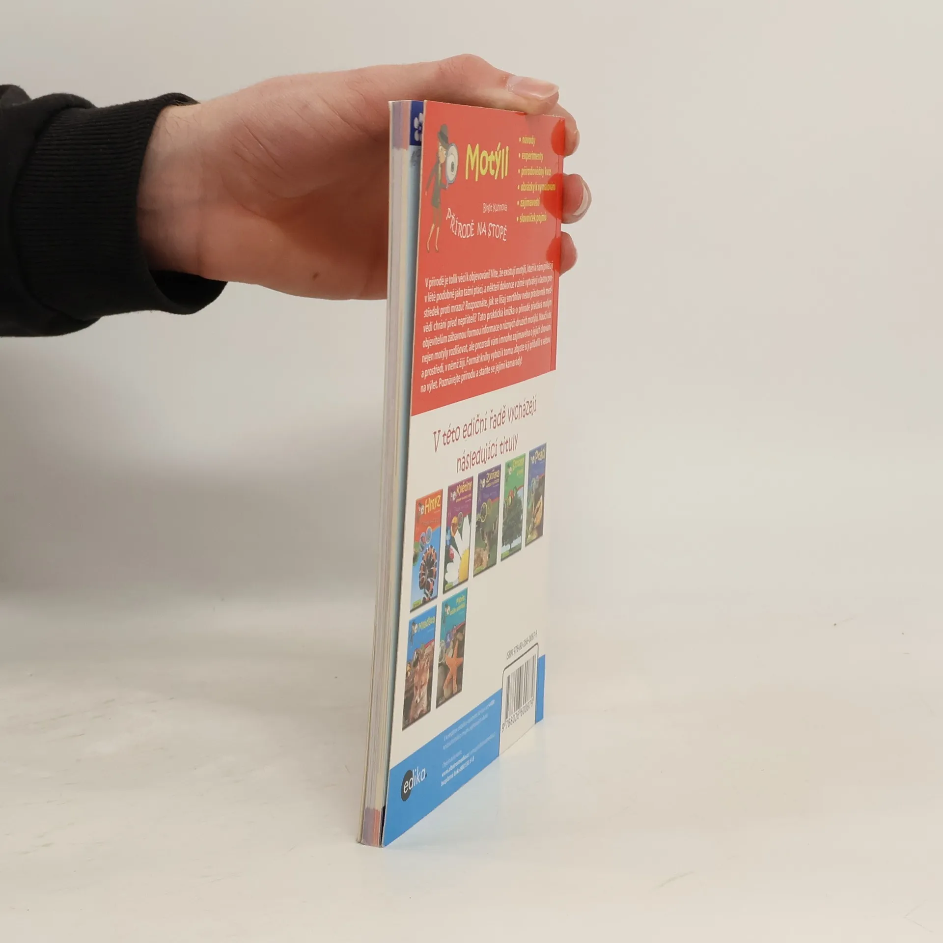 Tato praktická knížka seznámí děti zábavnou formou s přírodou kolem nás. Vše s řadou příloh: návody, experimenty, znalostní kvíz, obrázky k vymalování, zajímavosti, glosář. Formát knihy vybízí k tomu, abyste si ji přibalili s sebou na výlet do přírody. Naučí vás motýly nejen určovat, ale prozradí i mnoho zajímavého o jejich vlastnostech a stanovištích.