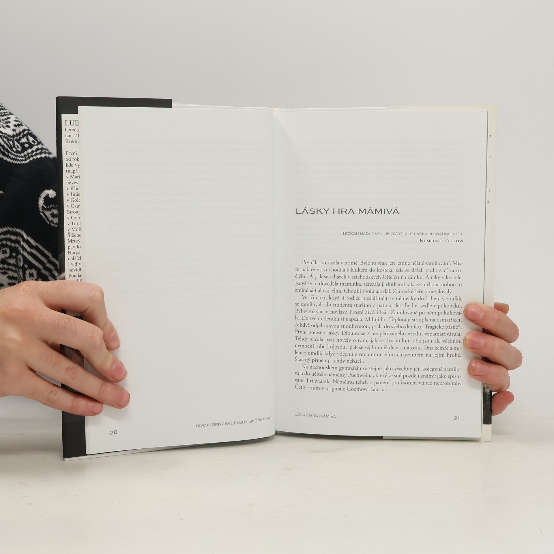 Životopisná knížka o herečce Lubě Skořepové. Monografie vznikla na základě Hůlova studia dříve vydaných knížek, jejichž autorkou je Luba Skořepová. Nejedná se tedy o dílo jednoho autora. Luba Skořepová vstupuje do Hůlova vyprávění vlastními monology na téma rodný Náchod, divadelní humor nebo magie lásky a prosazuje tak své osobité vidění. Ve vzpomínkách se vrací nejen k rodině, ale i k uměleckému prostředí, v němž se pohybovala po roce 1945. Zejména pak ke svému působení v Národním divadle, jehož dlouholetou členkou byla. Vyprávění dokresluje pěkná fotografická příloha, která přibližuje důležité okamžiky ze soukromého i profesionálního života herečky.