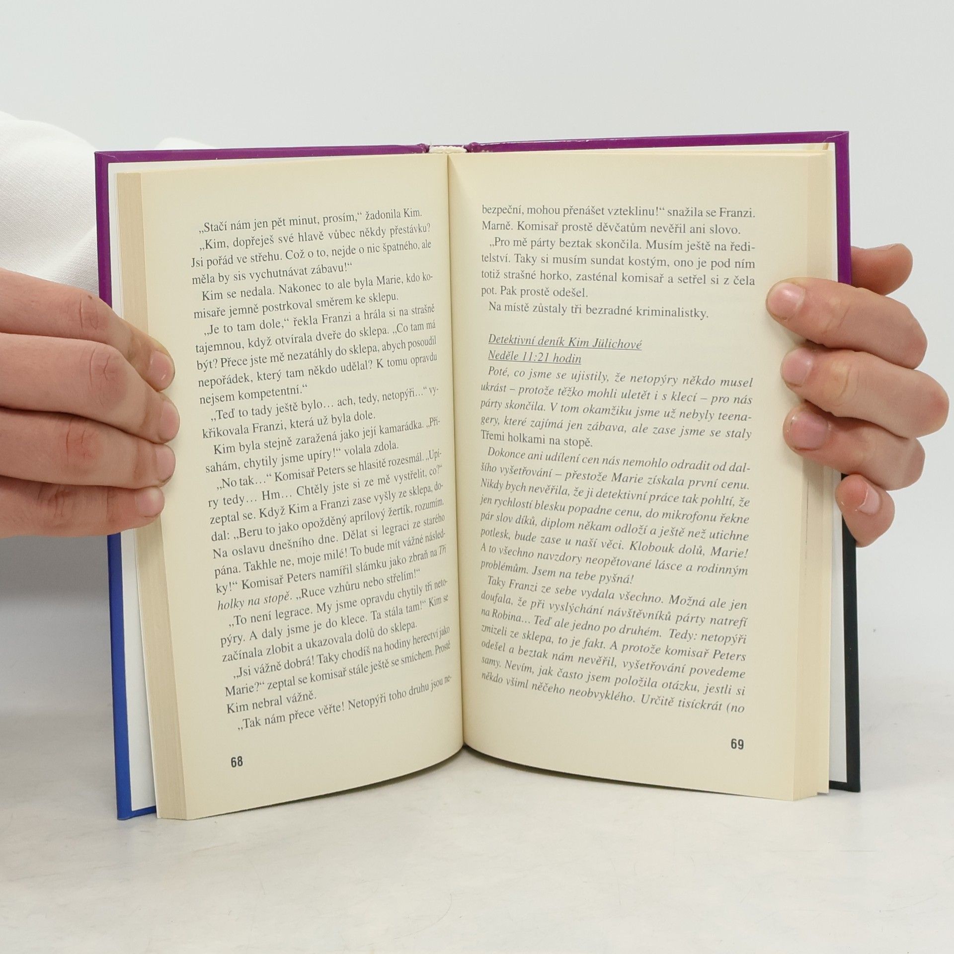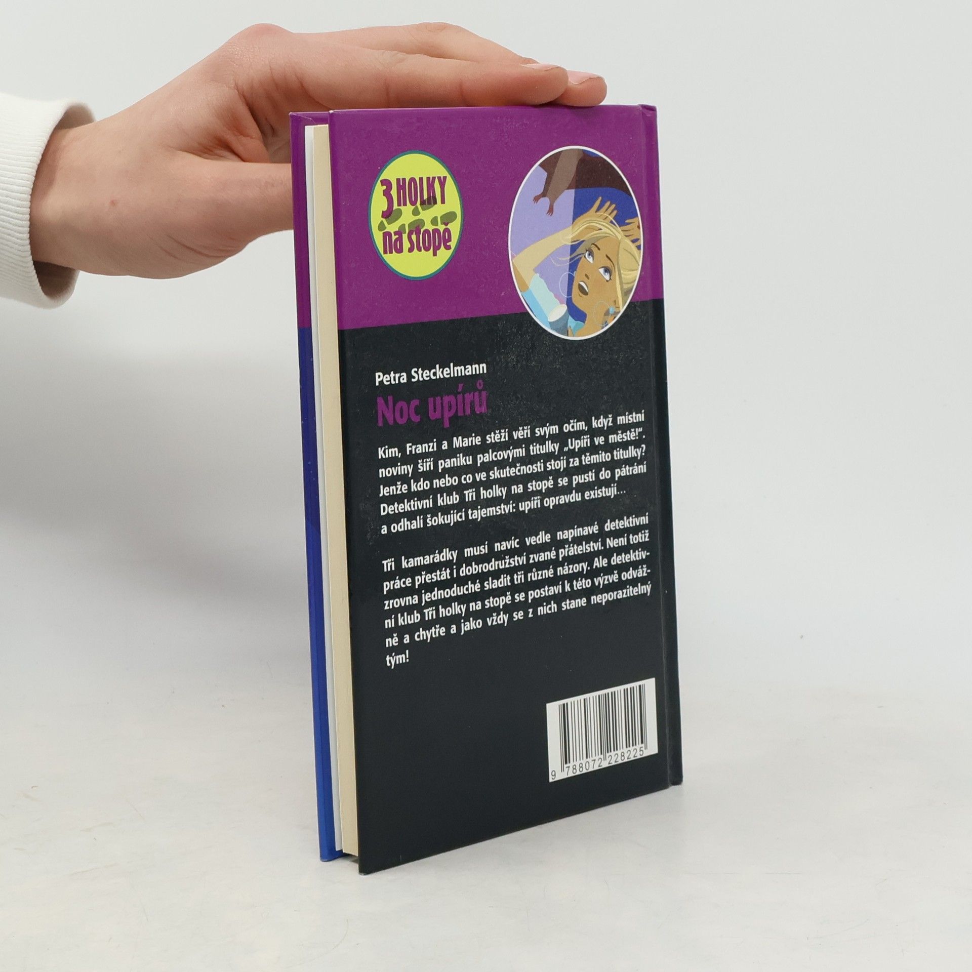 Kim, Franzi a Marie stěží věří svým očím, když místní noviny šíří paniku palcovými titulky „Upíři ve městě!“. Jenže kdo nebo co ve skutečnosti stojí za těmito titulky? Detektivní klub Tři holky na stopě se pustí do pátrání a odhalí šokující tajemství: upíři opravdu existují...... Tři kamarádky musí navíc vedle napínavé detektivní práce přestát i dobrodružství zvané přátelství. Není totiž zrovna jednoduché sladit tři různé názory. Ale detektivní klub Tři holky na stopě se postaví k této výzvě odvážně a chytře a jako vždy se z nich stane neporazittelný tým!