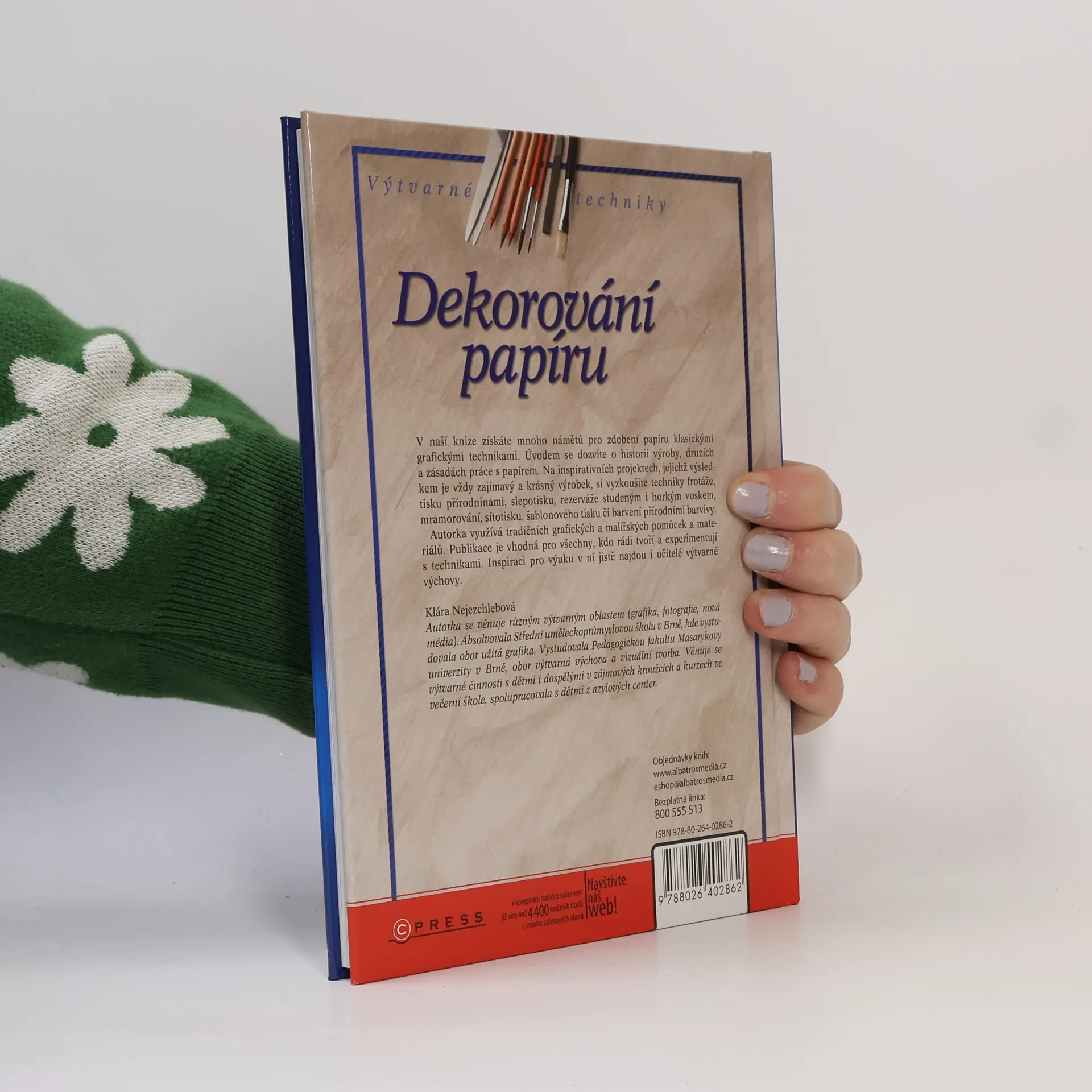 V této knize získáte náměty pro zdobení papíru klasickými grafickými technikami. Úvodem se dozvíte o historii výroby papíru, jeho druzích a zásadách práce s ním. V projektech, jejichž výsledkem je vždy zajímavý a krásný výrobek, si vyzkoušíte techniku frotáže, tisku přírodninami, slepotisku, rezerváže studeným i horkým voskem, mramorování, sítotisku, šablonového tisku či barvení přírodními barvivy. 2. vydání.