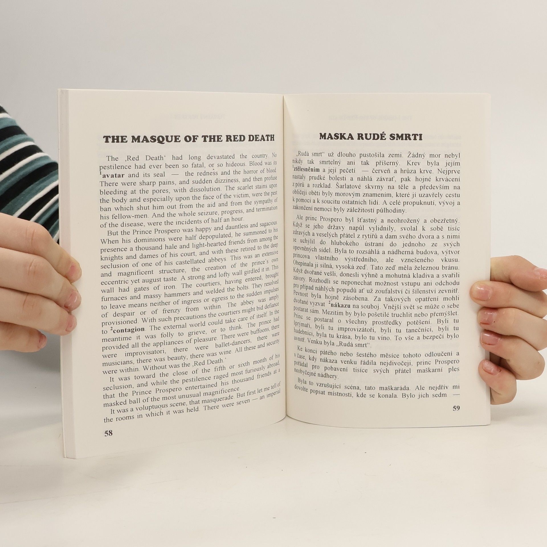 Text Edgara Alana Poea zpracovaný zrcadlovým způsobem – na levé straně je původní text, na pravé straně pak překlad do češtiny, čímž odpadá pracné a zdlouhavé hledání ve slovníku. Méně obvyklé výrazy, ustálená rčení nebo slovní spojení jsou navíc v původním i přeloženém textu zvýrazněny.