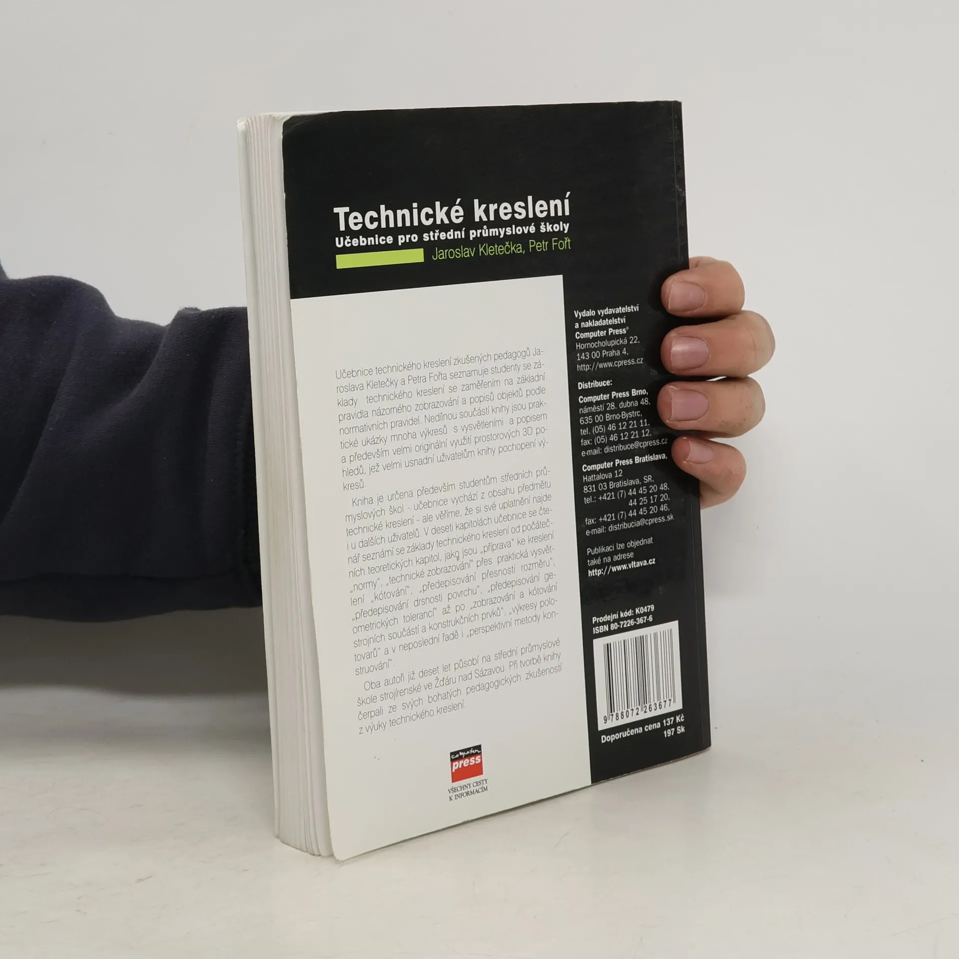 Učebnice technického kreslení zkušených pedagogů J. Kletečky a P. Fořta seznamuje studenty se základy technického kreslení se zaměřením na základní pravidla názorného zobrazování a popisů objektů podle normativních pravidel. V deseti kapitolách se čtenář seznámí se základy technického kreslení. Nedílnou součástí knihy jsou praktické ukázky mnoha výkresů s vysvětleními a popisem a především velmi originální využití prostorových 3D pohledů, jež velmi usnadní uživatelům knihy pochopení výkresů. Kniha je určena především studentům středních průmyslových škol, ale věříme, že si své uplatnění najde i u dalších uživatelů. Oba autoři působí na střední průmyslové škole ve Žďáru nad Sázavou. Při tvorbě knihy čerpali ze svých bohatých pedagogických zkušeností z výuky technického kreslení.