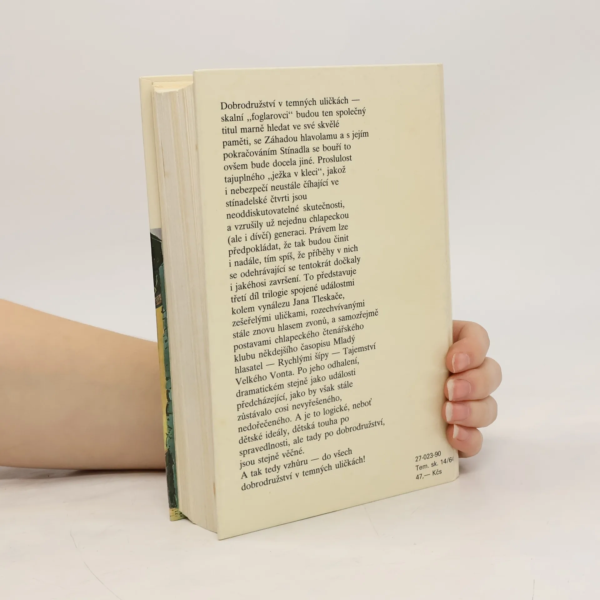 Dobrodružství v temných uličkách - skalní "foglarovci" budou ten společný titul marně hledat ve své skvělé paměti, se Záhadou hlavolamu a s jejím pokračováním Stínadla se bouří to ovšem bude docela jiné. Proslulost tajuplného "ježka v kleci", jakož i nebezpečí neustále číhající vestínadelské čtvrti jsou neoddiskutovatelné skutečnosti, a vzrušily už nejednu chlapeckou (ale i dívčí) generaci. Právem lze předpokládat, že tak budou činit i nadále, tím spíš, že příběhy v nich se odehrávající se tentokrát dočkaly i jakéhosi završení.To představuje třetí díl trilogie spojené událostmi kolem vynálezu Jana Tleskače, zešeřelými uličkami, rozechvívanými stále znovu hlasem zvonů, a samozřejmě postavami chlapeckého čtenářského klubu někdejšího časopisu Mladý hlasatel - Rychlými šípy - Tajemství Velkého Vonta. Po jeho odhalení, dramatickém stejně jako události předcházející, jako by však stále zůstávalo cosi nevyřešeného, nedořečeného. A je to logické, neboť dětské ideály, dětská touha po spravedlnosti, ale tady po dobrodružství, jsou stejně věčné. A tak tedy vzhůru - do vše dobrodružství v temných uličkách! 1/ Záhada hlavolamu 2/ Stínadla se bouří 3/ Tajemství Velké Vonta