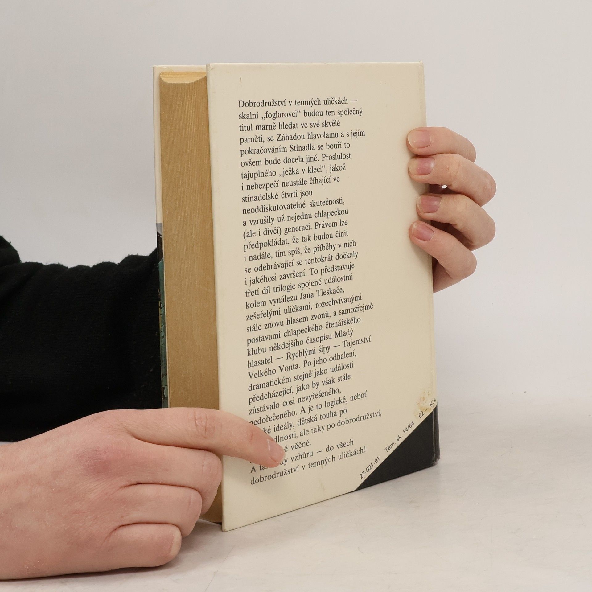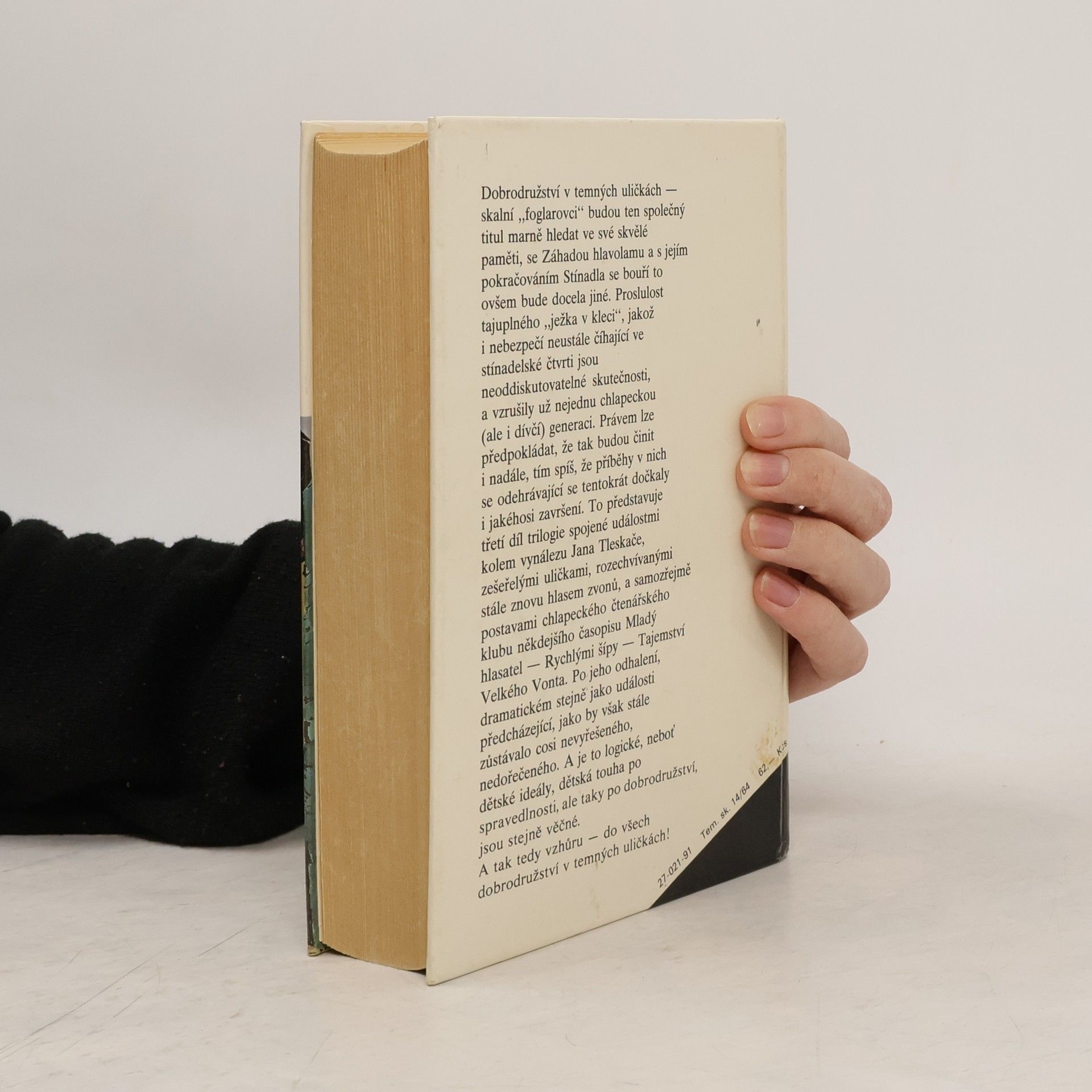 Dobrodružství v temných uličkách - skalní "foglarovci" budou ten společný titul marně hledat ve své skvělé paměti, se Záhadou hlavolamu a s jejím pokračováním Stínadla se bouří to ovšem bude docela jiné. Proslulost tajuplného "ježka v kleci", jakož i nebezpečí neustále číhající vestínadelské čtvrti jsou neoddiskutovatelné skutečnosti, a vzrušily už nejednu chlapeckou (ale i dívčí) generaci. Právem lze předpokládat, že tak budou činit i nadále, tím spíš, že příběhy v nich se odehrávající se tentokrát dočkaly i jakéhosi završení.To představuje třetí díl trilogie spojené událostmi kolem vynálezu Jana Tleskače, zešeřelými uličkami, rozechvívanými stále znovu hlasem zvonů, a samozřejmě postavami chlapeckého čtenářského klubu někdejšího časopisu Mladý hlasatel - Rychlými šípy - Tajemství Velkého Vonta. Po jeho odhalení, dramatickém stejně jako události předcházející, jako by však stále zůstávalo cosi nevyřešeného, nedořečeného. A je to logické, neboť dětské ideály, dětská touha po spravedlnosti, ale tady po dobrodružství, jsou stejně věčné. A tak tedy vzhůru - do vše dobrodružství v temných uličkách! 1/ Záhada hlavolamu 2/ Stínadla se bouří 3/ Tajemství Velké Vonta