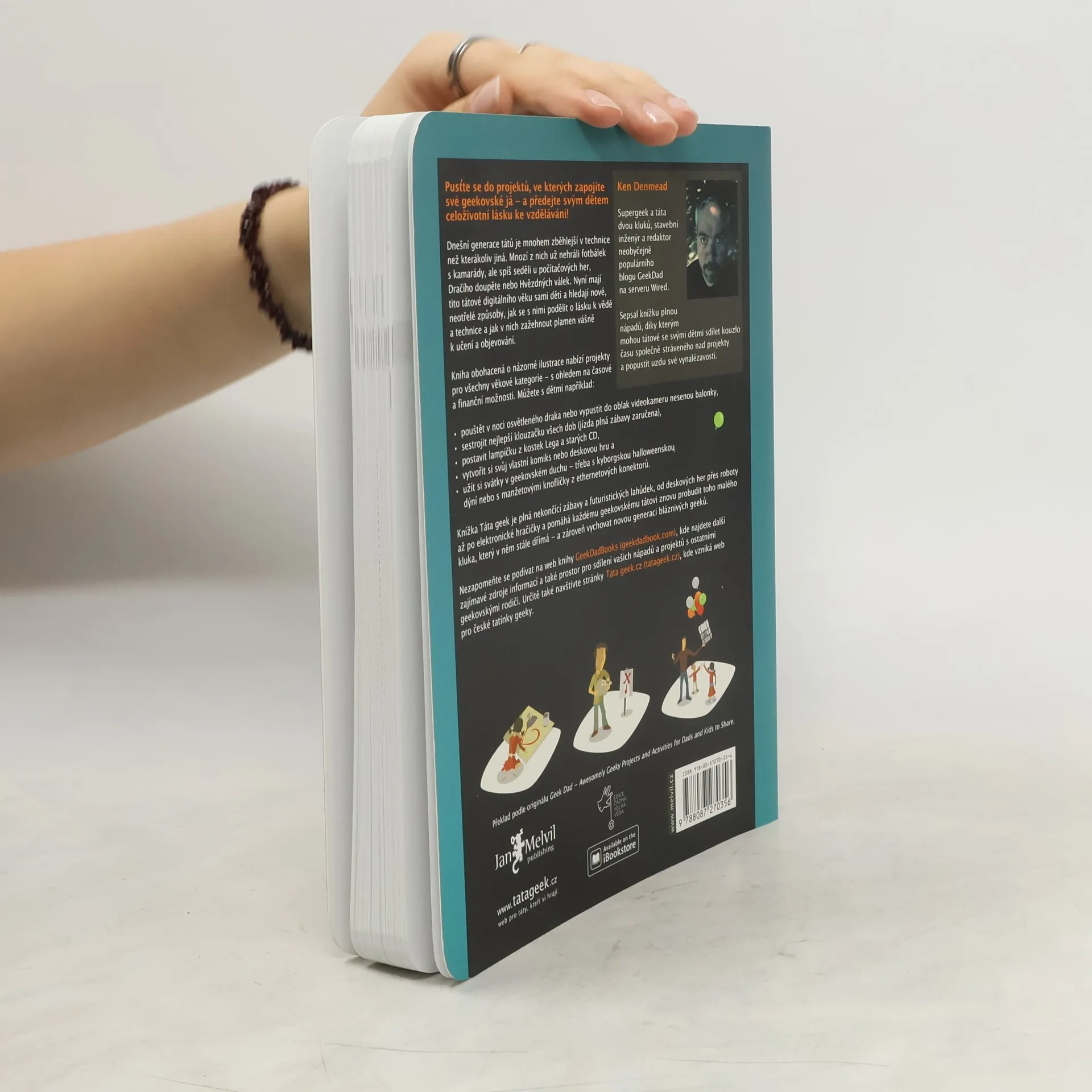 Geekové jsou novodobou kategorií dospělých, jejichž poznávacím znamením je dětství u počítače, Dračího doupěte, případně v kroužku programování. Jsou zběhlejší v technice než kterákoliv generace před nimi a své inovace neváhají aplikovat na všechny aspekty života. Díky neodolatelné osobnosti se i geekové stávají dříve či později táty a tady přichází chvíle pro evoluci nového druhu – táty geeka. Tito tátové nepodceňují děti a hledají nové, neotřelé způsoby, jak se s nimi podělit o lásku k vědě a technice, jak v nich zažehnout plamen vášně k učení a objevování. A zejména, jak se také dobře pobavit. Knížka Táta geek je plná nekončící zábavy a futuristických lahůdek, od stolních her přes roboty až po elektronické hračičky a pomáhá každému geekovskému tátovi probudit malého kluka, který v něm stále dřímá.