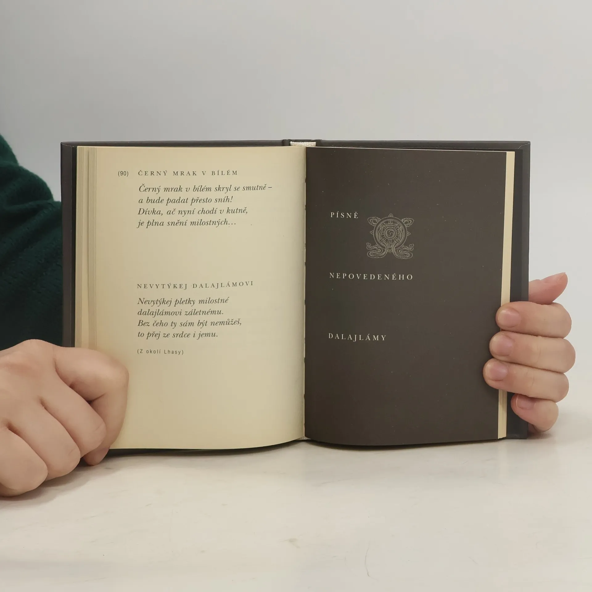 Rozsáhlejší výbor z dosud málo u nás známé tibetské lidové poezie přináší v deseti oddílech (Odraz měsíce, Tři zlaté kvítky, Voda s mlékem, Ztečení sněžné hory, Sníh ve mně, Vůně tibetských sosen, Studánka, kde jsi pil poprvé,Ohnivá paprika, Černý mrak v bílém, Písně nepovedeného dalajlámy) krátké písně, kterým se říká tangthung-sä. Poezie zapůsobí na dnešního čtenáře neotřelým kouzlem básnivě naivního pohledu na lásku, přírodu, svět a sociálním i satirickým a protináboženským zaměřením.