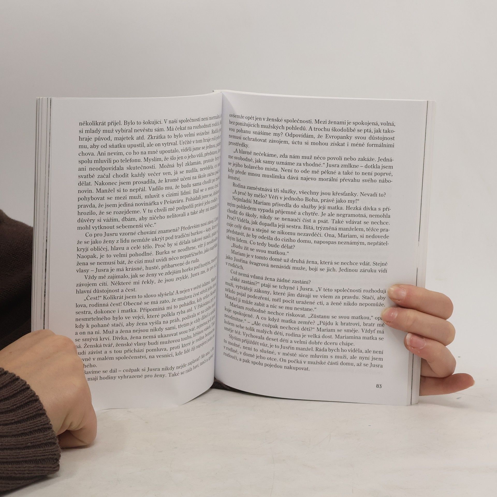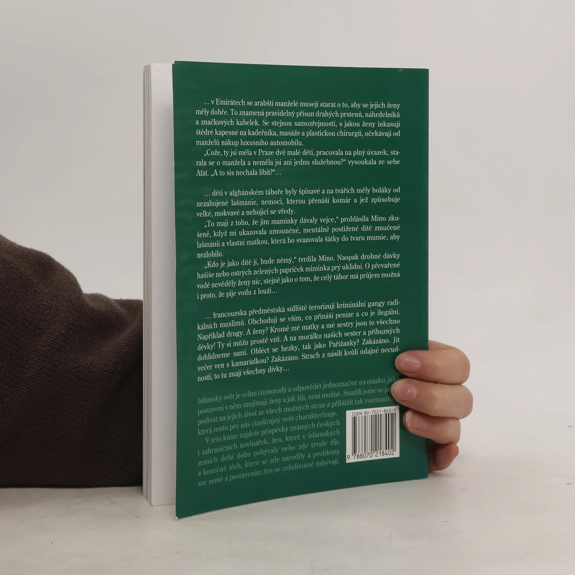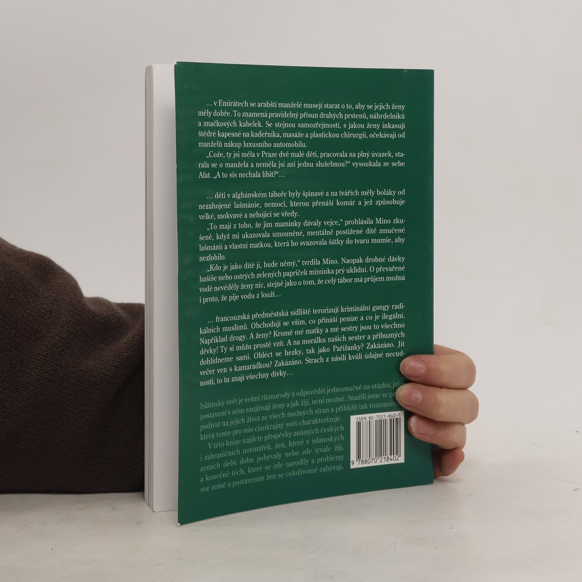 Sférou, v níž se západní životní styl výrazně odlišuje od způsobu života islámských společenství, je postavení žen. Jestliže na Západě, vycházejícím z židovsko-křesťanské tradice, se žena domohla po zápase trvajícím více než sto let alespoň navenek rovnoprávnosti, v islámských zemích její postavení zůstává od role mužů zásadně odlišné. V čem tato odlišnost spočívá, to ukazuje soubor čtrnácti příběhů, sestavený publicistkou M. Frouzovou. Kromě reportáží tu nacházíme obecnější zamyšlení i osobní vzpomínky, mezi autorkami jsou vedle žen pocházejících přímo z islámských zemí také Češky, např. známé novinářky P. Procházková a P. Jazairiová. Editorka se snažila čtenáři zprostředkovat charakteristiku života žen jak v nejrůznějších islámských státech, tak i v těch, kde muslimové představují menšinu (Francie, Indie, Česká republika).