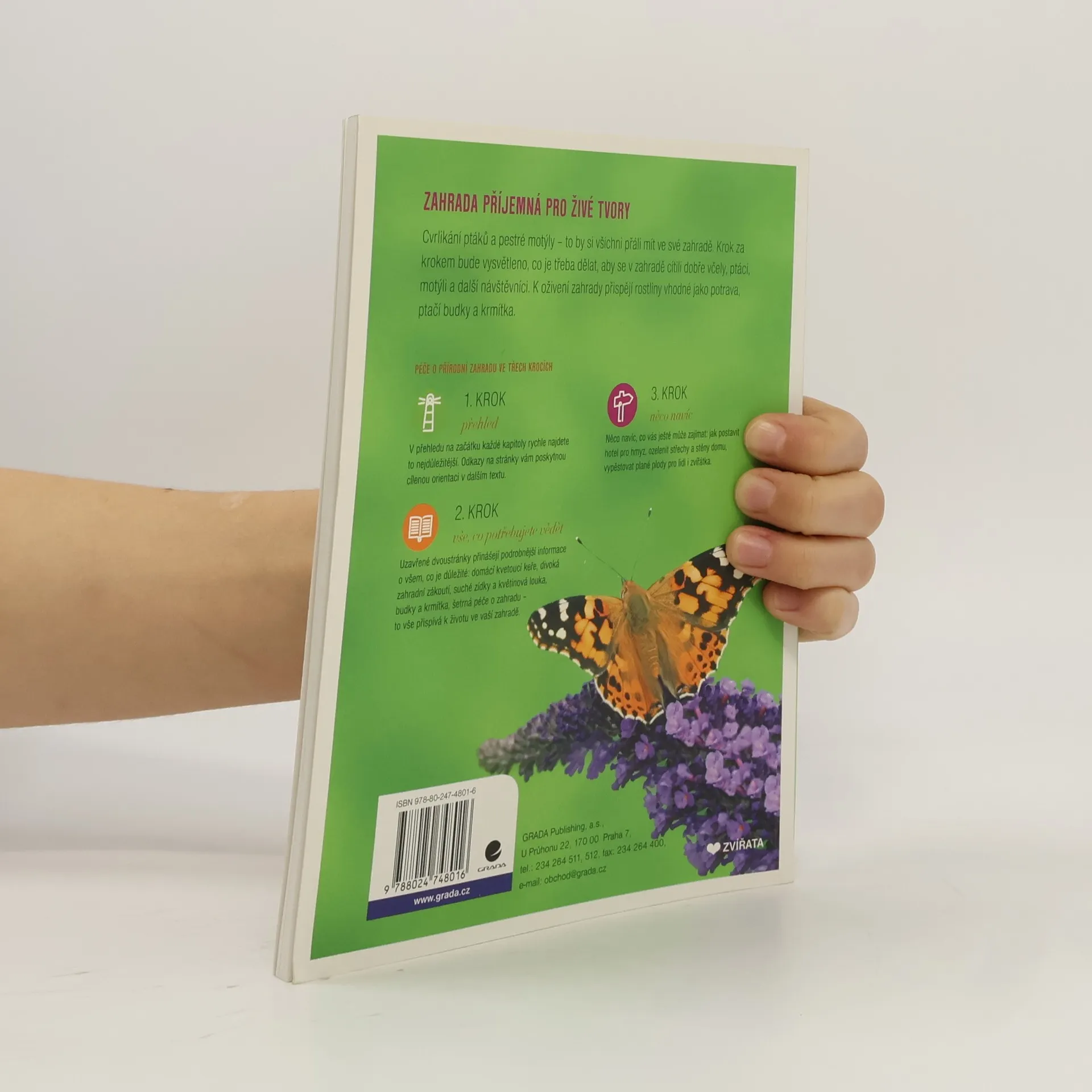 Nás, co máme rádi zvířata, vždy potěší, když na naší zahradě něco zajímavého žije. A ono tam žije více živočichů, než si myslíte! Zjistěte, kde je hledat, čeho si všímat a poznejte ty nejběžnější druhy. Chcete-li zvířatům pomoci a přilákat je na svůj pozemek, poradíme vám, jak na to. Zajistěte jim vhodné úkryty, postavte ptačí a motýlí budky, v zimě ptáky přikrmujte a v létě mějte na své zahradě takové rostliny, keře a stromy, které zvířatům poskytnou potravu. Postavte hmyzí hotýlek, koupadlo pro ptáky, malé jezírko v nádobě pro žáby a další obojživelníky a zasaďte voňavé rostliny pro motýly. Odměnou vám bude možnost pozorovat své "nájemníky" v jejich domácím prostředí.