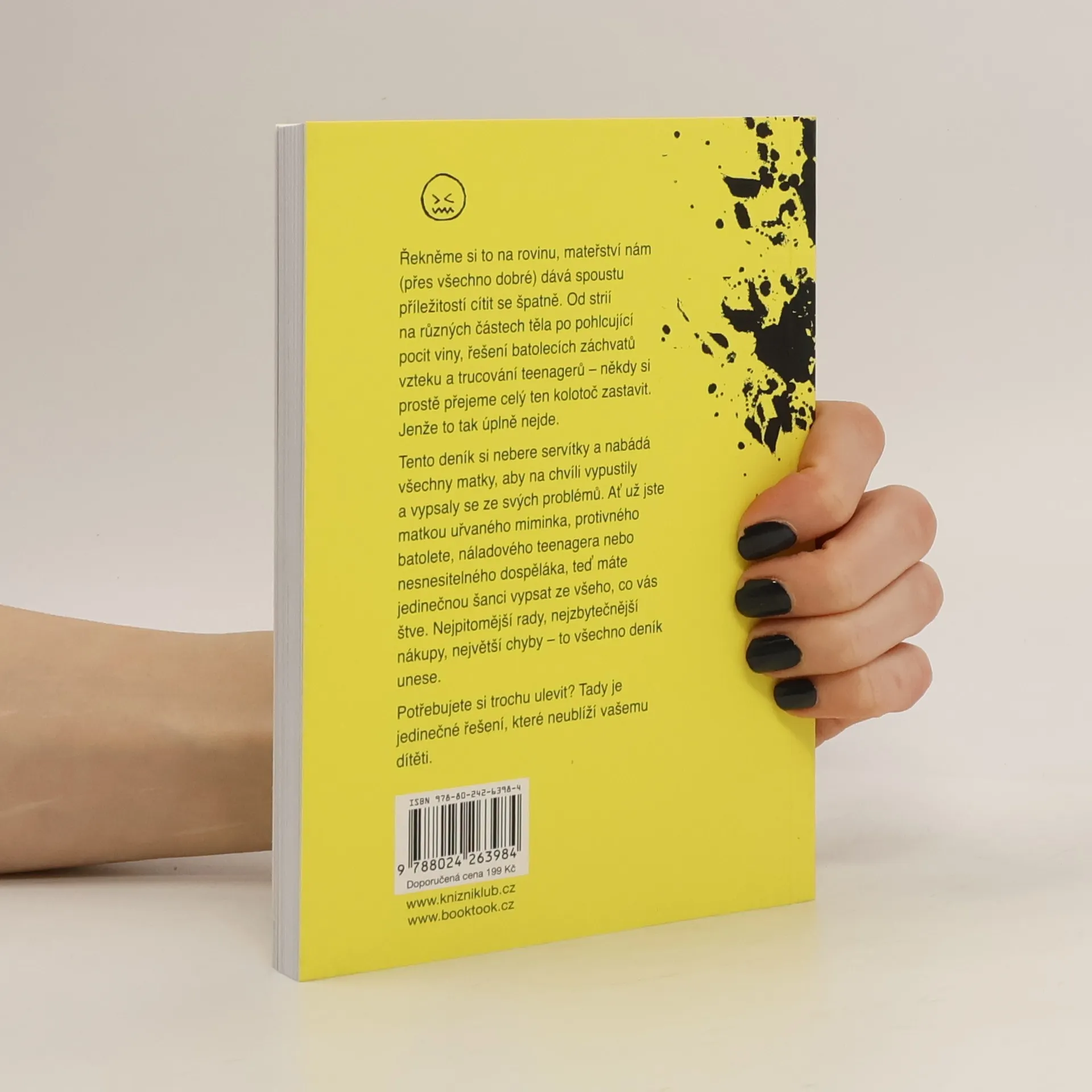 Řekněme si to na rovinu, mateřství nám (přes všechno dobré) dává spoustu příležitostí cítit se špatně. Od strií na různých částech těla po pohlcující pocit viny, batolecí záchvaty vzteku a trucování teenagerů – někdy si prostě přejeme celý ten kolotoč zastavit. Jenže to tak úplně nejde, že ne? Tento deník si nebere servítky a nabádá všechny matky, aby na chvíli vypustily páru a vypsaly se ze svých problémů. Ať už jste matkou uřvaného miminka, protivného batolete, náladového teenagera nebo nesnesitelného dospěláka, teď máte jedinečnou šanci vypsat se ze všeho, co vás štve. Nejpitomější rady, nejzbytečnější nákupy, největší chyby – to všechno deník unese. Potřebujete si trochu ulevit? Tady je jedinečné řešení, které neublíží vašemu dítěti.