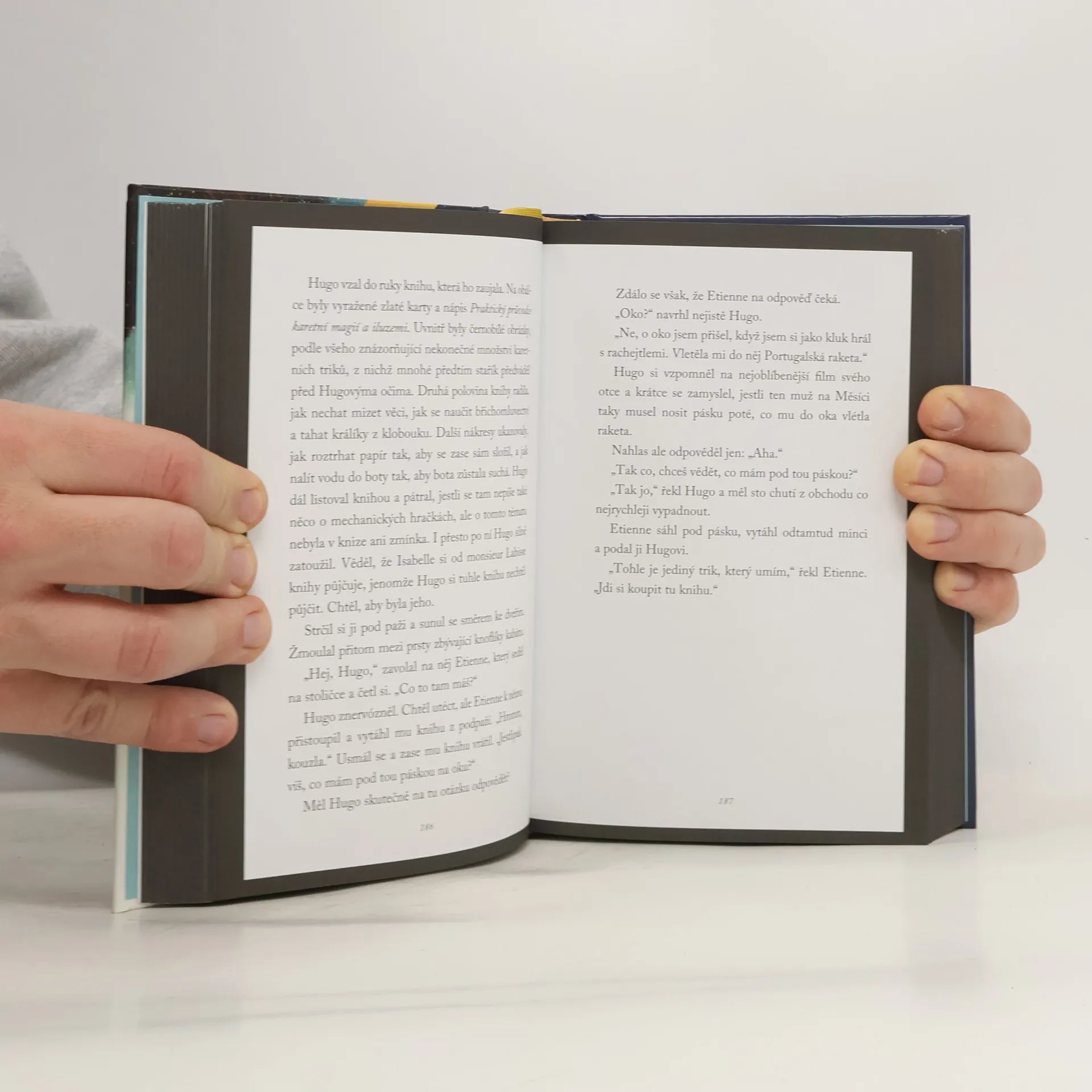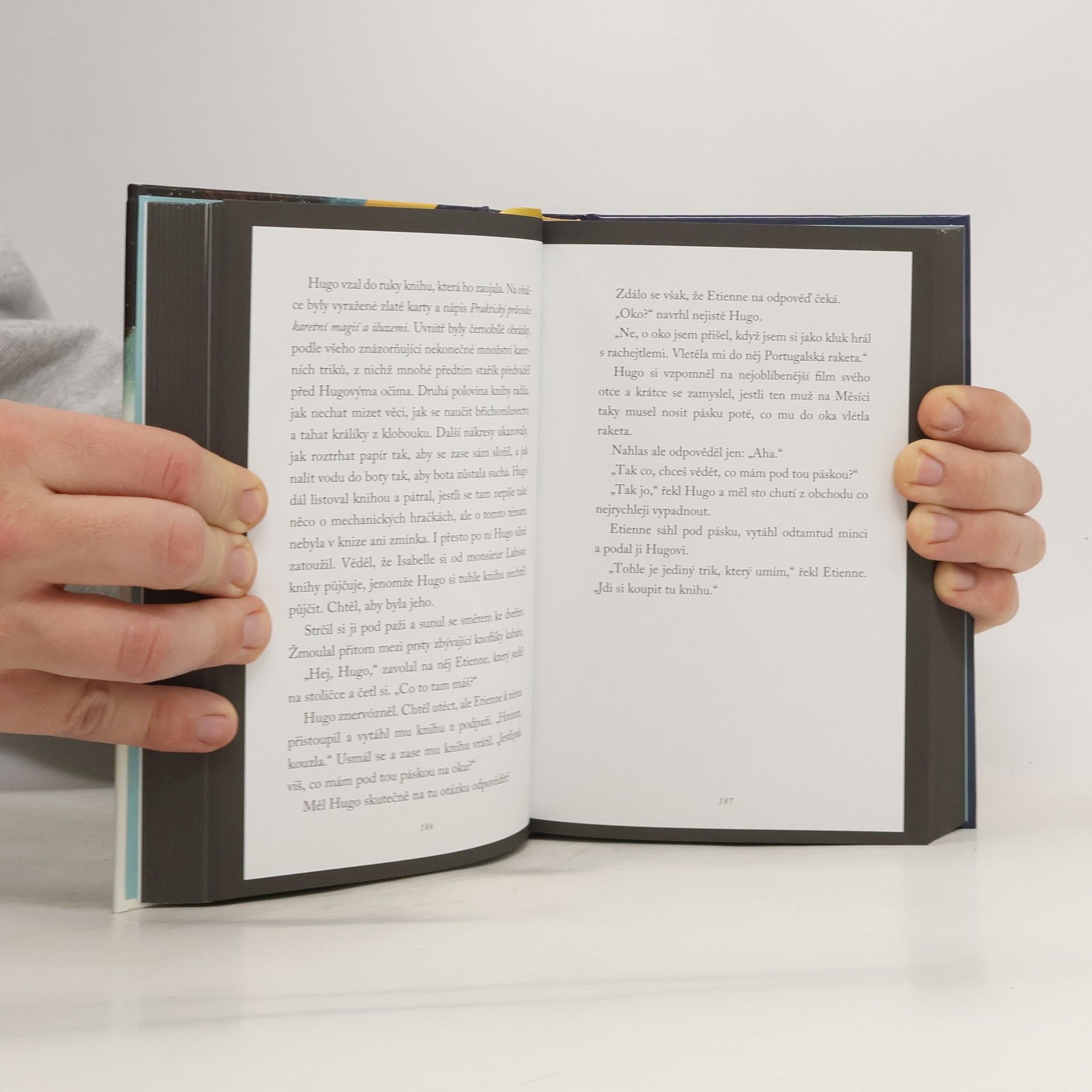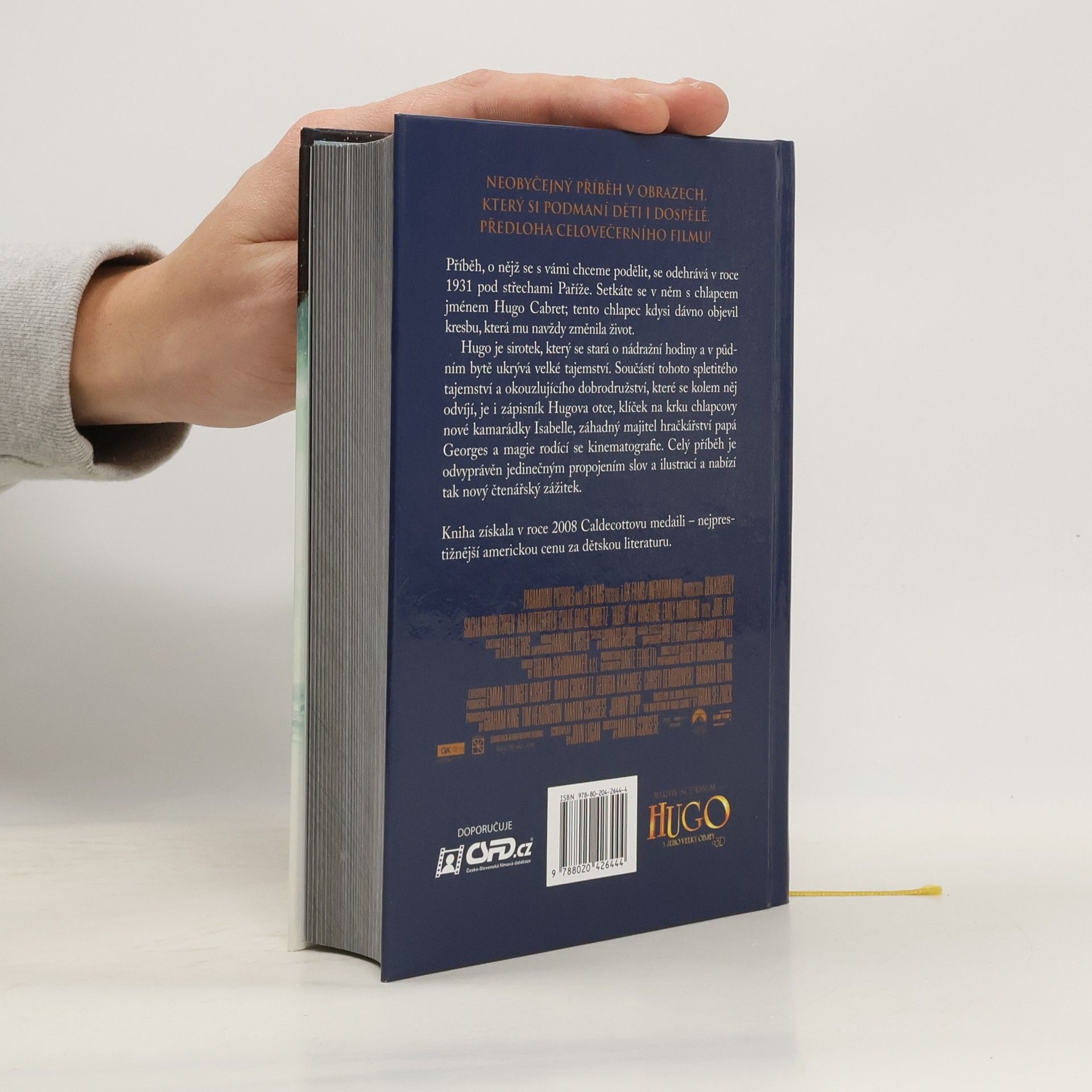 Příběh, o nějž se s vámi chceme podělit, se odehrává v roce 1931 pod střechami Paříže. Setkáte se v něm s chlapcem jménem Hugo Cabret; tento chlapec kdysi dávno objevil kresbu, která mu navždy změnila život. Hugo je sirotek, který se stará o nádražní hodiny a v půdním bytě ukrývá velké tajemství. Součástí tohoto spletitého tajemství a okouzlujícího dobrodružství, které se kolem něj odvíjí, je i zápisník Hugova otce, klíček na krku chlapcovy nové kamarádky Isabelle, záhadný majitel hračkářství Papa Georges a magie rodící se kinematografie. Celý příběh je odvyprávěn jedinečným propojením slov a ilustrací a nabízí tak nový čtenářský zážitek.