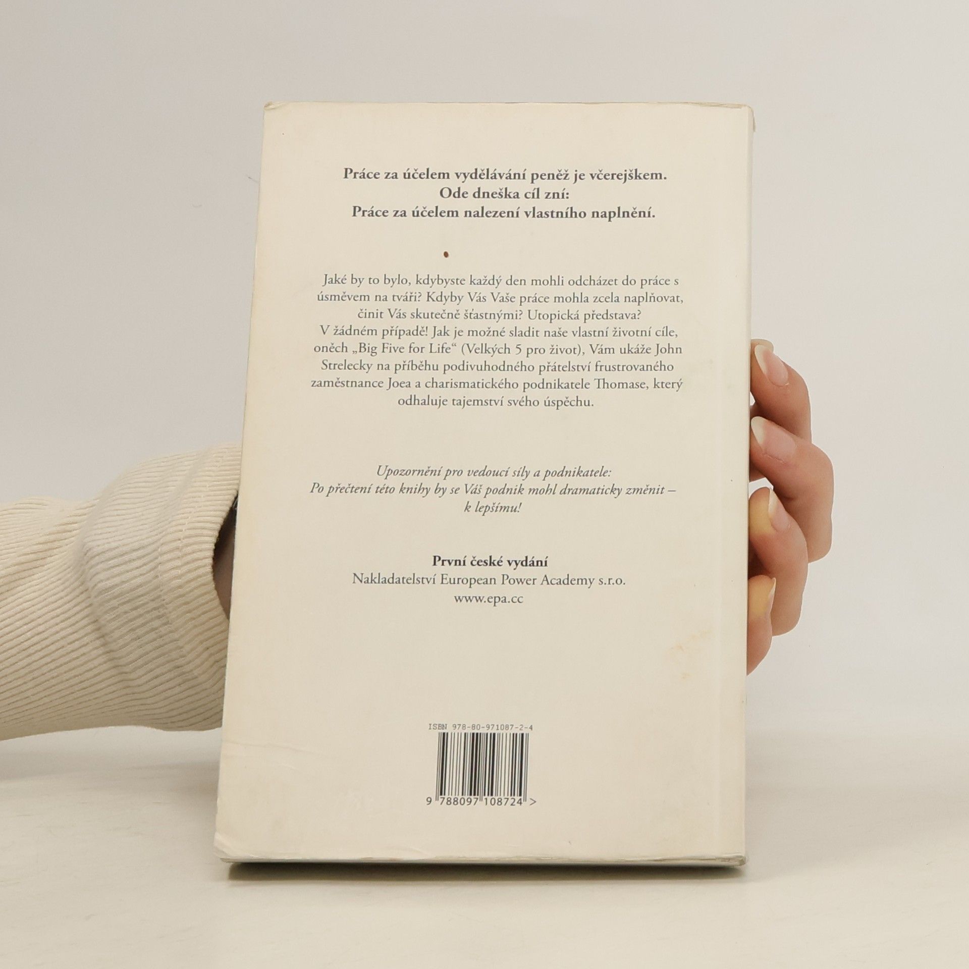 Jaké by to bylo, kdybyste každý den mohli odcházet do práce s úsměvem na tváři? Kdyby Vás Vaše práce mohla zcela naplňovat, činit skutečně šťastnými? Útopická představa? V žádném případě! Jak je možné sladit naše živnotní cíle, oněch "Big Five for Live", Vám ukaže příběh charismatického podnikatele Thomase, který se dozví, že má před sebou jen pár týdnů života a jeho přítele, frustrovaného zaměstnance, Joea, kterému postupně odhaluje tajemství svého úspěchu.