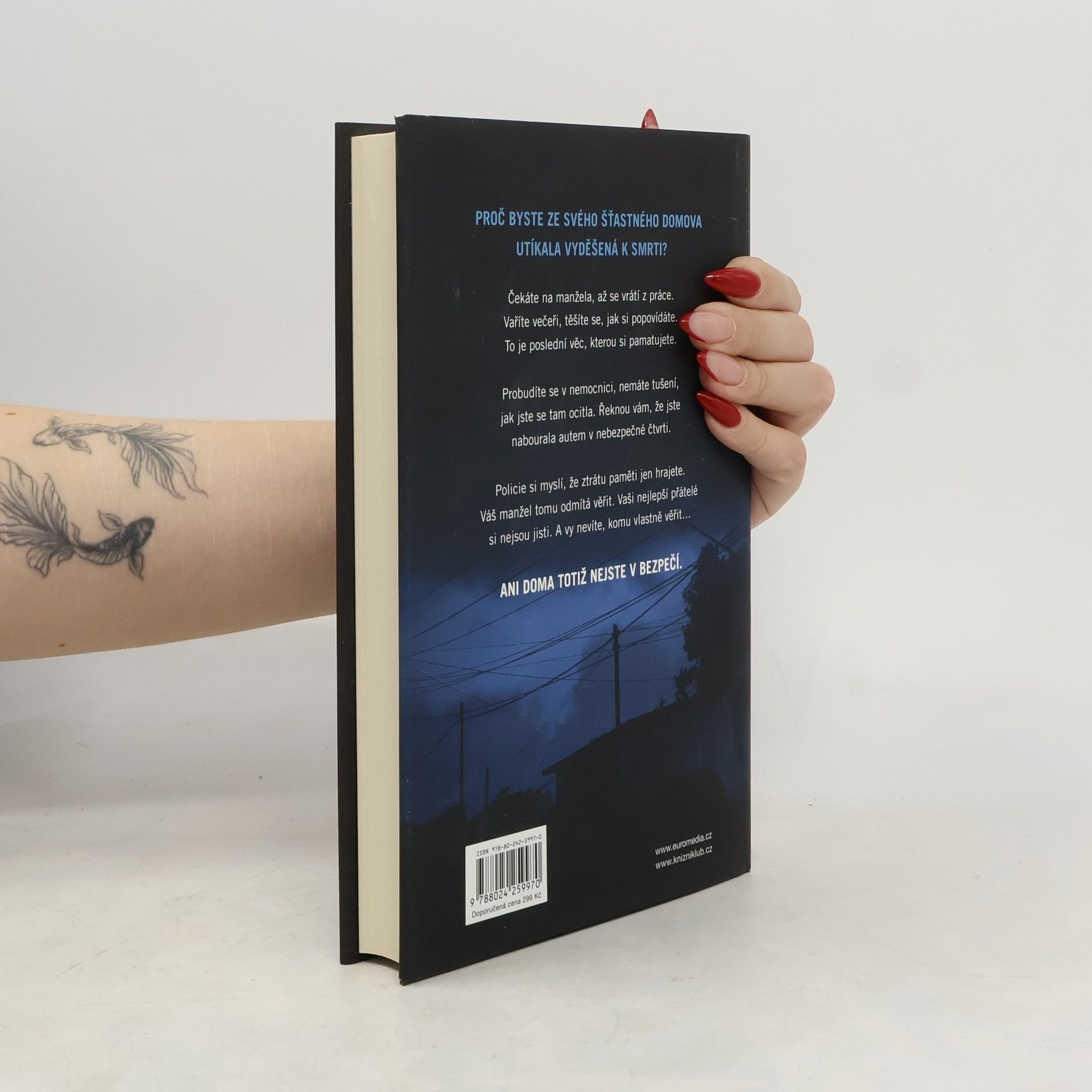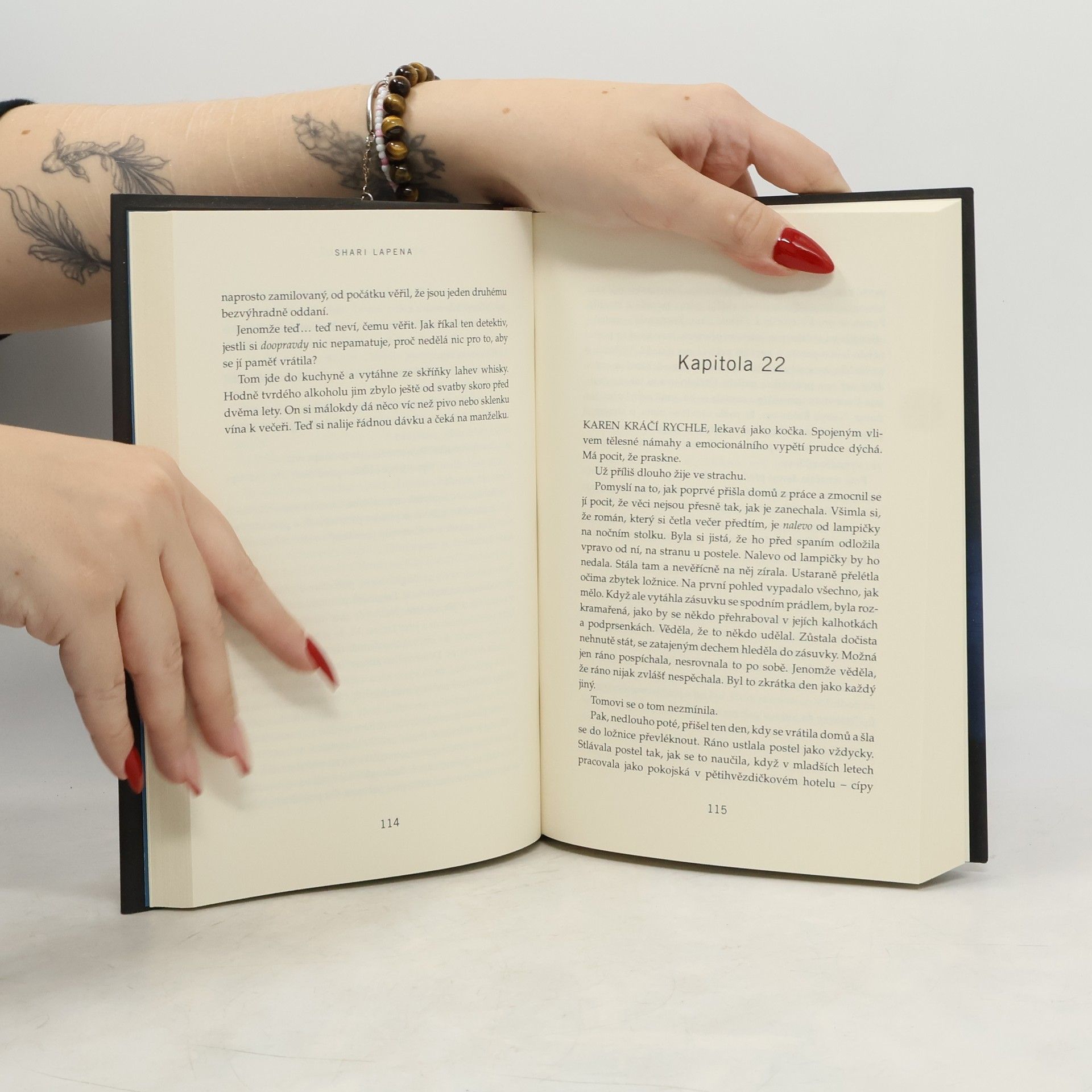V téhle útulné čtvrti spokojených domovů zůstávají nebezpečné lži uzavřeny za dveřmi… Shari Lapena, autorka thrilleru roku 2017 Manželé odvedle, přichází s dalším rodinným dramatem plným tajemství a nečekaných zvratů, které nikdy nepřestanou překvapovat. Karen a Tom Kruppovi jsou šťastní – vzali se teprve nedávno a vlastní nádherný dům poblíž New Yorku. Jednoho dne se Tom vrátí domů a zjistí, že Karen zmizela – její auto je pryč a zdá se, že odjela ve spěchu. Nevzala si dokonce ani kabelku, telefon, doklady. Krátce nato se Tom dozví, že Karen měla nehodu a leží v nemocnici s otřesem mozku a ztrátou paměti. Po čase se Karen, odhodlaná vyléčit se a zapomenout, vrací s Tomem domů. Ale zdá se, že se tam něco změnilo. Něco není v pořádku. Někdo tam byl. Někdo cizí. Jenže v tomhle domě je každý cizí. Každý má něco, co by podle něj mělo zůstat skryto. Něco, kvůli čemu by raději vraždil, jen aby si to mohl nechat pro sebe...