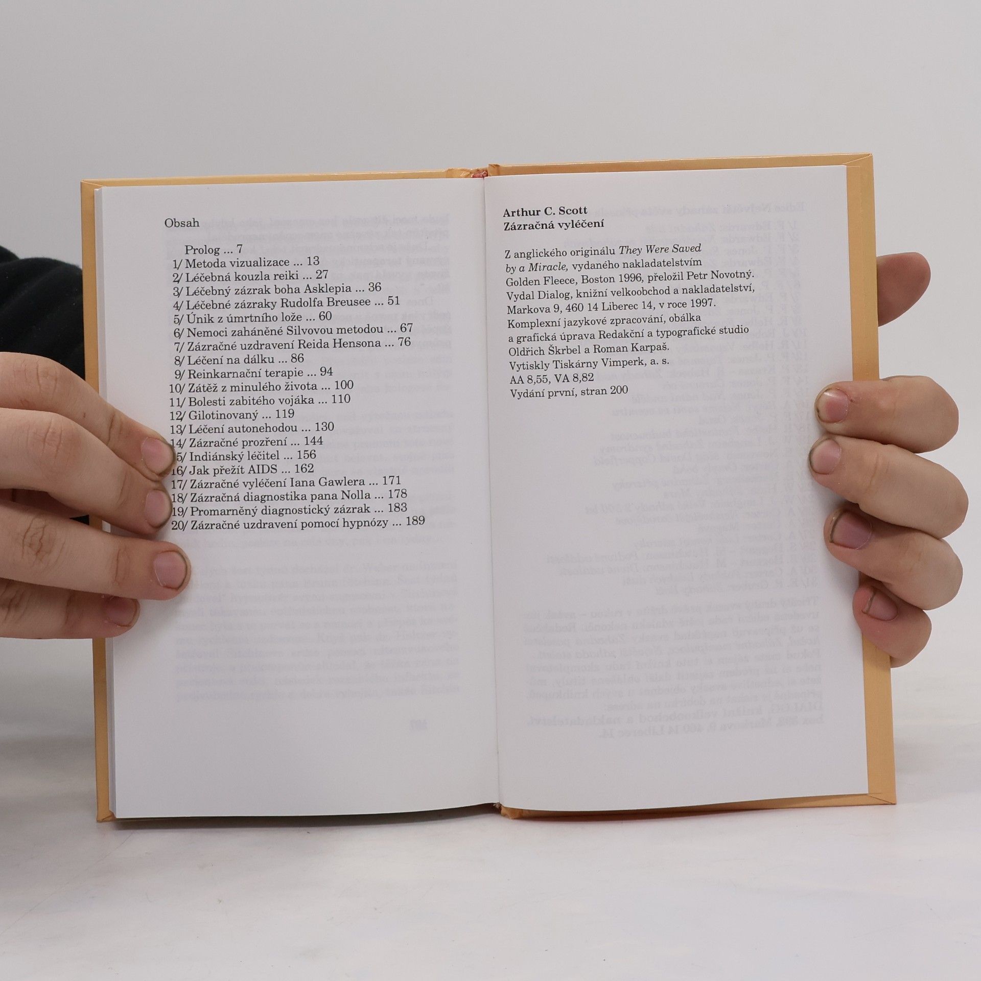Soubor příběhů o zázračném uzdravení nevyléčitelně nemocných pomocí nezvyklých medicínských i léčitelských metod. Kniha obsahuje: Metoda vizualizace, Léčebná kouzla reiki, Léčebný zázrak boha Asklepia, Léčebné zázraky Rudolfa Breusee, Únik z úmrtního lože, Nemoci zaháněné Silvovou metodou, Zázračné uzdravení Reida Hensona, Léčení na dálku, Reinkarnační terapie, Zátěž z minulého života, Bolesti zabitého vojáka, Gilotinovaný, Léčení autonehodou, Zázračné prozření, Indiánský léčitel, Jak přežít AIDS, Zázračné vyléčení Iana Gawlera, Zázračná diagnostika pana Nolla, Promarněný diagnostický zázrak, Zázračné uzdravení pomocí hypnózy