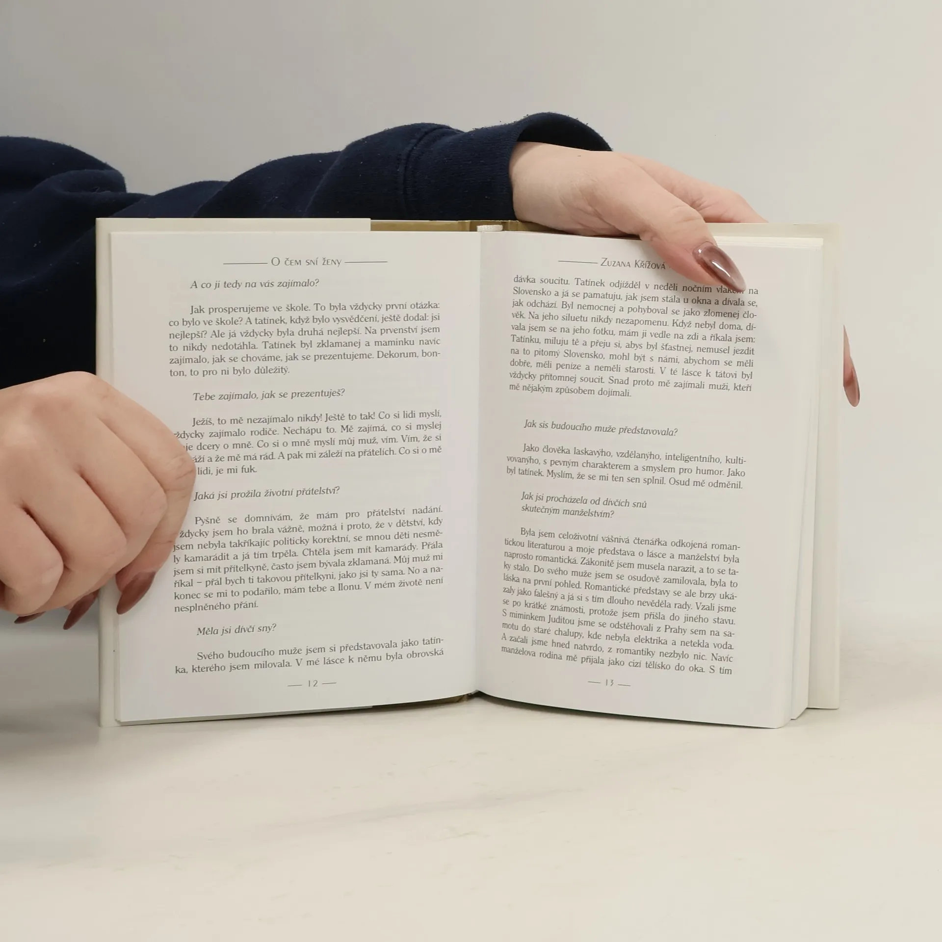 Tato knížka není pouhým přepisem úspěšného dokumentu O čem sní ženy, který byl natočen v roce 1999 pro Českou televizi ve filmové společnosti FEBIO. Je záznamem celých rozhovorů z natáčení, z nichž byla do filmu zakomponována jenom část. Autorka poprvé vstupuje na literární pole s dokumentárním textem, ale bez nástrojů své profese - obrazu, zvuku, střihu a hudby. A opět s invencí, pochopením a láskou. výsledkem jsou autentické - někdy dojemné, jindy drsné příběhy žen, které otevřeně svěřují svůj intimní životní příběh. V každém sděleném osudu (včetně osudu autorky) můžeme rozpoznat vlastní prožitou zkušenost, objevit sounáležitost s jinými lidskými příběhy a dobrat se v osobní katarzi k dalšímu poznání sebe sama.