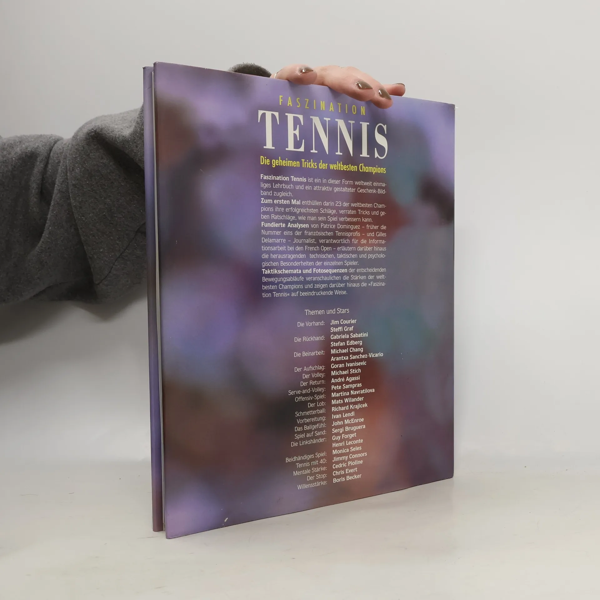 Zum ersten Mal enthüllen 23 der weltbesten Champions ihre erfolgreichsten Schläge, verraten Tricks und geben Ratschläge, wie man sein Spiel verbessern kann. Fundierte Analysen von Patrice Dominguez erläutern darüber hinaus die herausragenden technischen, taktischen und psychologischen Besonderheiten der einzelnen Spieler.