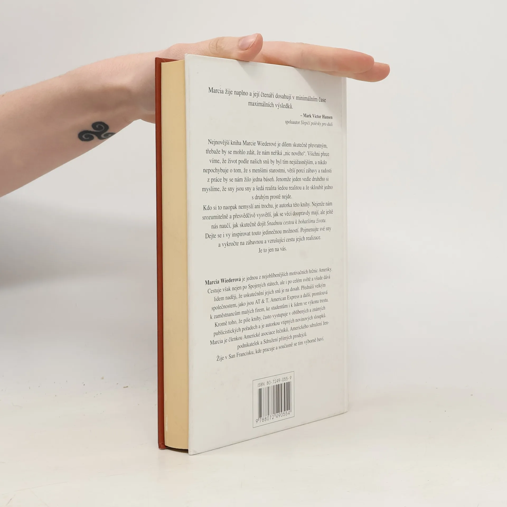 Nejnovější kniha Marcie Wiederové je dílem skutečně převratným, třebaže by se mohlo zdát, že nám neříká "nic nového". Všichni přece víme, že život podle našich snů by byl tím nejúžasnějším, a nikdo nepochybuje o tom, že s menšími starostmi, větší porcí zábavy a radosti z práce by se nám žilo jedna báseň. Jenomže jeden vedle druhého si myslíme, že sny jsou sny a šedá realita šedou realitou a že skloubit jedno s druhým prostě nejde. Kdo si to naopak nemyslí ani trochu, je autorka této knihy. Nejenže nám srozumitelně a přesvědčivé vysvětlí, jak se věci doopravdy mají, ale ještě nás naučí, jak skutečně dojít Snadnou cestou k bohatšímu životu. Dejte se i vy inspirovat touto jedinečnou možností. Pojmenujte své sny a vykročte na zábavnou a vzrušující cestu jejich realizace. Je to jen na vás. Marcia Wiederová je jednou z nejoblíbenějších motivačních řečnic Ameriky. Cestuje však nejen po Spojených státech, ale i po celém světě a všude dává lidem naději, že uskutečnění jejich snů je na dosah. Přednáší velkým společnostem, jako jsou AT & T, Američan Express a další, promlouvá k zaměstnancům malých firem, ke studentům i k lidem ve výkonu trestu. Kromě toho, že píše knihy, často vystupuje v oblíbených a známých publicistických pořadech a je autorkou vtipných novinových sloupků.