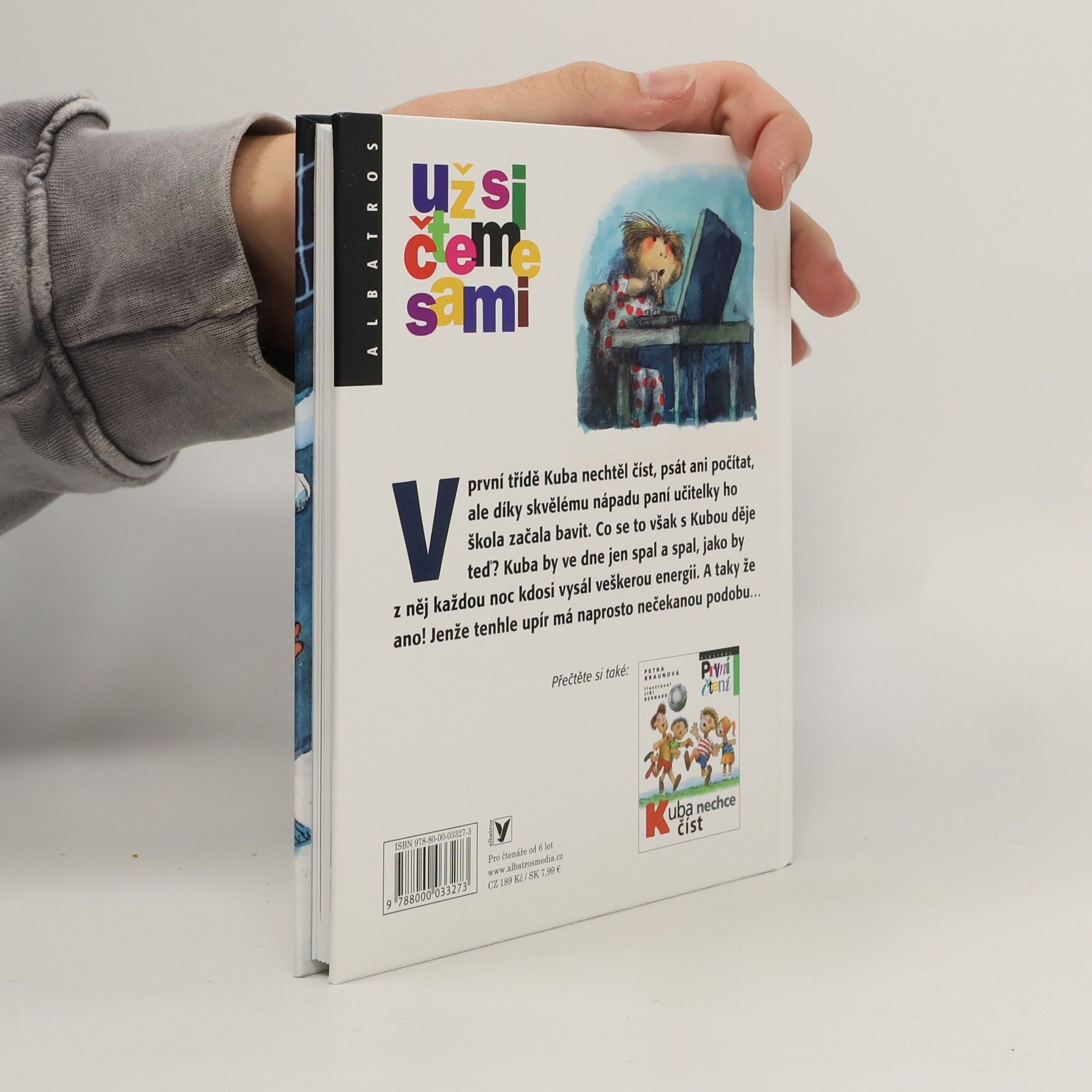 V první třídě Kuba nechtěl číst, psát ani počítat, ale díky skvělému nápadu paní učitelky ho škola začala bavit. Co se to však s Kubou děje teď? Kuba by ve dne jen spal a spal, jako by z něj každou noc kdosi vysál veškerou energii. A taky že ano! Jenže tenhle upír má naprosto nečekanou podobu… Pro děti od 7 let.