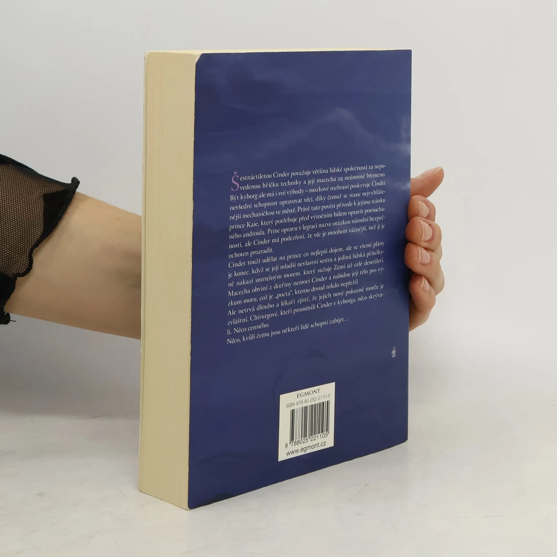 Rušné ulice Nového Pekingu se hemží lidmi a androidy. Populaci devastuje smrtící nákaza. Z vesmíru tomu přihlížejí krutí měsíční lidé, kteří čekají na správný okamžik. Nikdo netuší, že osud Země spočívá v rukou jediné dívky... Šestnáctiletou Cinder považuje většina lidské společnosti za nepovedenou hříčku techniky a její macecha za neúnosné břemeno. Být kyborg ale má i své výhody – mozkové rozhraní poskytuje Cinder nevšední schopnost opravovat věci (roboty, vznášedla, své vlastní nefungující součástky), díky čemuž se stane nejvyhlášenější mechaničkou v Novém Pekingu. Právě tato pověst přivede k jejímu stánku prince Kaie, který potřebuje před výročním bálem opravit porouchaného androida. Princ opravu v legraci nazve otázkou národní bezpečnosti, ale Cinder má podezření, že věc je mnohem vážnější, než jí je princ ochoten prozradit. Cinder touží udělat na prince co nejlepší dojem, ale se všemi plány je konec, když se její mladší nevlastní sestra a jediná lidská přítelkyně nakazí smrtelným morem, který sužuje Zemi už celé desetiletí. Macecha obviní z dceřiny nemoci Cinder a nabídne její tělo pro výzkum moru, což je „pocta“, kterou dosud nikdo nepřežil. Ale netrvá dlouho a vědci zjistí, že jejich nové pokusné morče je zvláštní. Chirurgové, kteří proměnili Cinder v kyborga, něco skrývali. Něco cenného. Něco, kvůli čemu jsou někteří lidé ochotní zabíjet…
