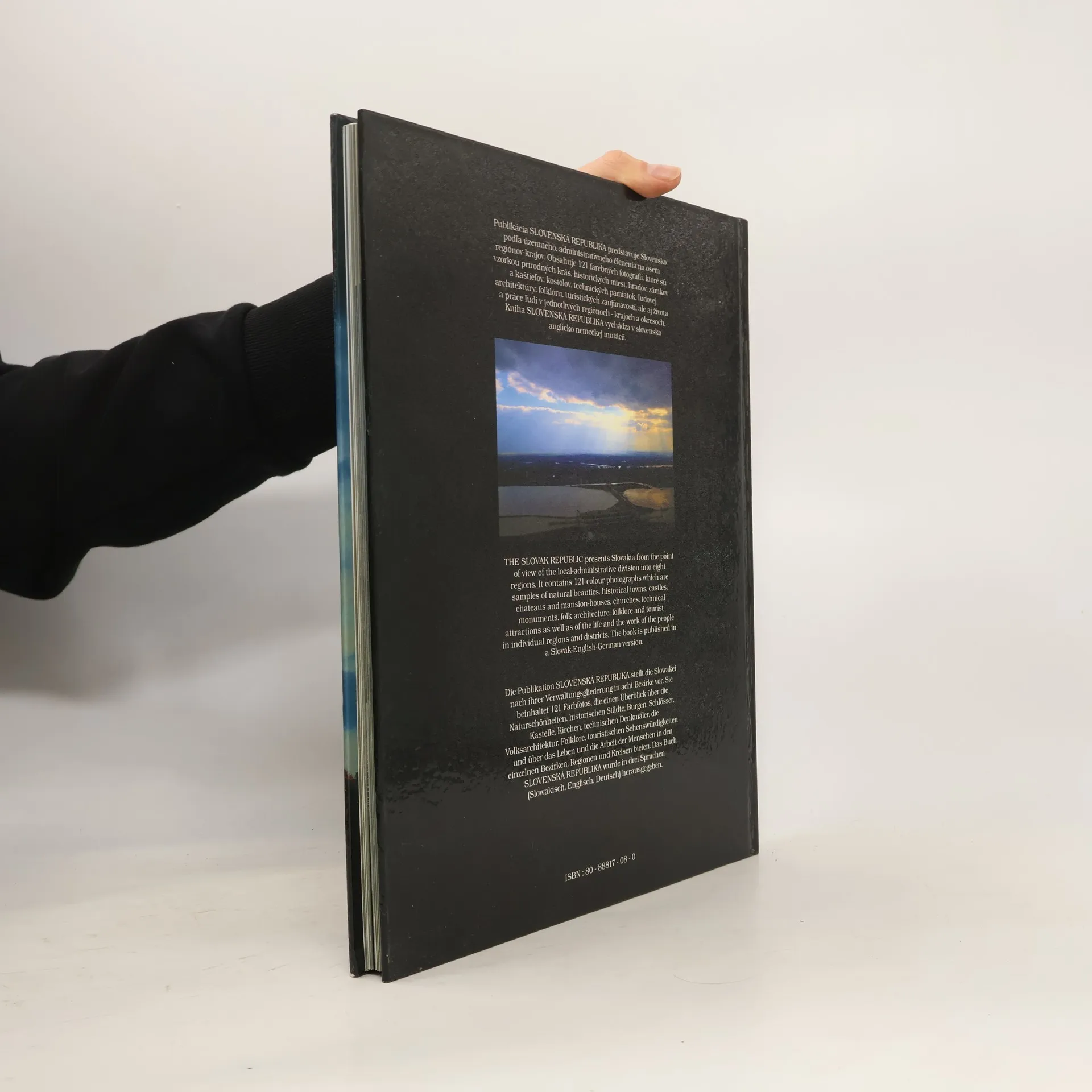 Predstavuje Slovensko podľa územného, administratívneho členenia na osem regiónov – krajov. Veľkoplošné farebné fotografie sú vzorkou prírodných krás, historických miest, hradov, zámkov a kaštieľov, kostolov, technických pamiatok, ľudovej architektúry, folklóru, turistických zaujímavostí, ale aj života a práce ľudí v jednotlivých regiónoch – krajoch a okresoch. Texty v slovenčine, angličtine a nemčine.