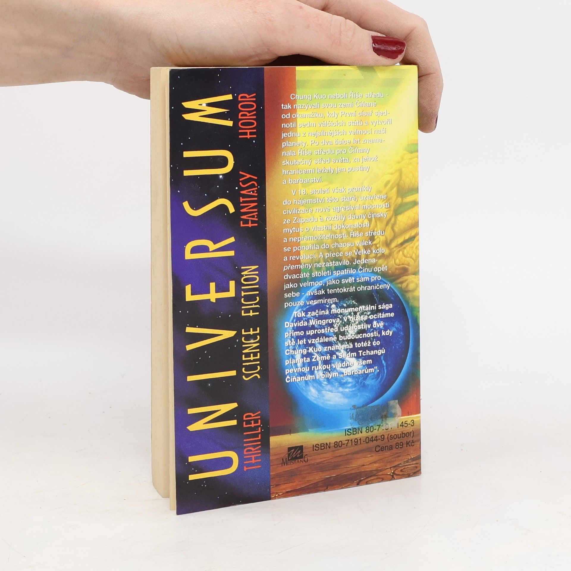 První díl série. Chung Kuo neboli Říše středu – tak nazývali svou zemi Číňané od okamžiku, kdy První císař sjednotil sedm válčících států a vytvořil jednu z nejsilnějších velmocí naší planety. Po dva tisíce let znamenala Říše středu pro Číňany skutečný střed světa, za jehož hranicemi ležely jen pustiny a barbarství. V 18. století však pronikly do hájemství této staré, uzavřené civilizace nové agresivní mocnosti ze Západu a rozbily dávný čínský mýtus o vlastní dokonalosti a nepřemožitelnosti. Říše středu se ponořila do chaosu válek a revolucí. A přece se Velké kolo přeměny nezastavilo. Jedenadvacáté století spatřilo Čínu opět jako velmoc, jako svět sám pro sebe – avšak tentokrát ohraničený pouze vesmírem. Tak začíná monumentální sága Davida Wingrova, v níž se ocitáme přímo uprostřed událostí v dvě stě let vzdálené budoucnosti, kdy Chung Kuo znamená totéž co planeta Země a Sedm Tchangů pevnou rukou vládne všem Číňanům i bílým „barbarům“.... celý text