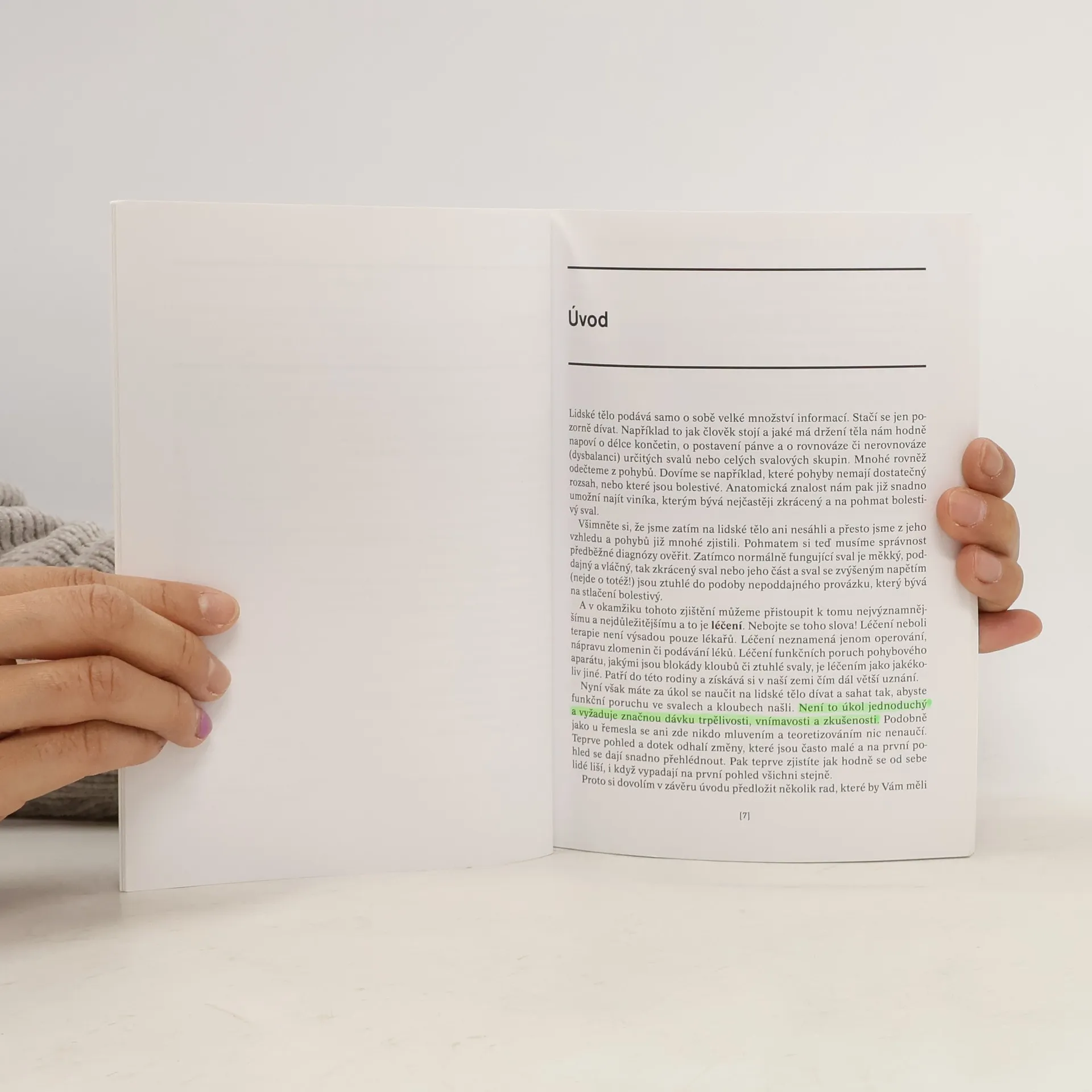 Lidské tělo podává samo o sobě velké množství informací. Stačí se jen pozorně dívat. Například jak člověk stojí a jaké má držení těla hodně napoví o délce končetin, o postavení pánve a o rovnováze či nerovnováze určitých svalů nebo celých svalových skupin. Mnohé rovněž odečteme z pohybů. Dozvíme se například, které pohyby nemají dostatečný rozsah, nebo které jsou bolestivé. Anatomická znalost pak již snadno umožní najít viníka, kterým bývá zkrácený a na pohmat bolestivý sval. Pohmatem pak lze ověřit správnost předběžné diagnózy. Zatímco normálně fungující sval je měkký, poddajný a vláčný, zkrácený sval nebo jeho část jsou ztuhlé, na stlačení bolestivé. V okamžiku tohoto zjištění je třeba přistoupit k tomu nejpodstatnějšímu – léčení. Autor se v publikaci stává zkušeným a citlivým průvodcem lékařů při funkční diagnostice jednotlivých oblastí pohybového aparátu.