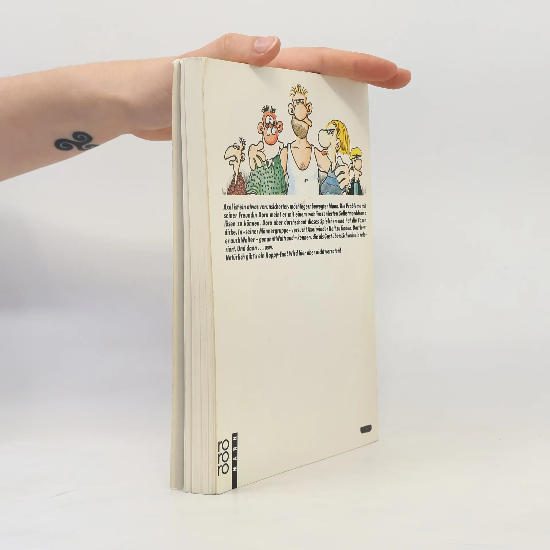 "Axel ist ein etwas verunsicherter, möchtegernbewegter Mann. Die Probleme mit seiner Freundin Doro meint er mit einem wohlinszenierten Selbstmorddrama lösen zu können. Doro aber durchschaut dieses Spielchen und hat die Faxen dicke. In »seiner Männergruppe« versucht Axel wieder Halt zu finden. Dort lernt er auch Walter - genannt Waltraud - kennen, die als Gast übers Schwulsein referiert. Und dann... usw"--Back cover