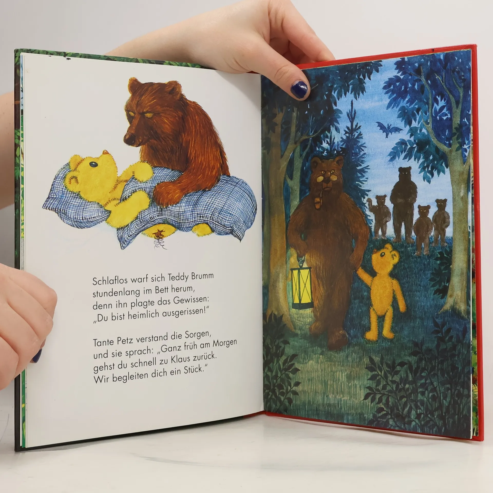 „Liebe Kinder, hört die Mär von dem kleinen Teddybär, der sich nachts im Wald verlief ...“ So beginnt eines der schönsten Kinderbücher. Klaus hat seinen lieben, gelben Teddy achtlos in die Ecke geworfen. Der ist gekränkt und läuft davon. Im Wald ist es schön, und spannende Abenteuer erlebt er auch. Er findet Freunde und wird von einer Braunbärenfamilie aufgenommen. Aber er hat Sehnsucht nach Klaus. Als Vater Braunbär die Zeitung liest, entdeckt er eine Anzeige: Klaus sucht seinen Teddy Brumm. Da weiß der Teddy, dass Klaus sich seinen Teddy zurückwünscht. Die Braunbären helfen ihm, nach Hause zurückzukehren. Das Buch vom 'Teddy Brumm' wurde als Puppentrickfilm verfilmt und fand weltweit sein Publikum.