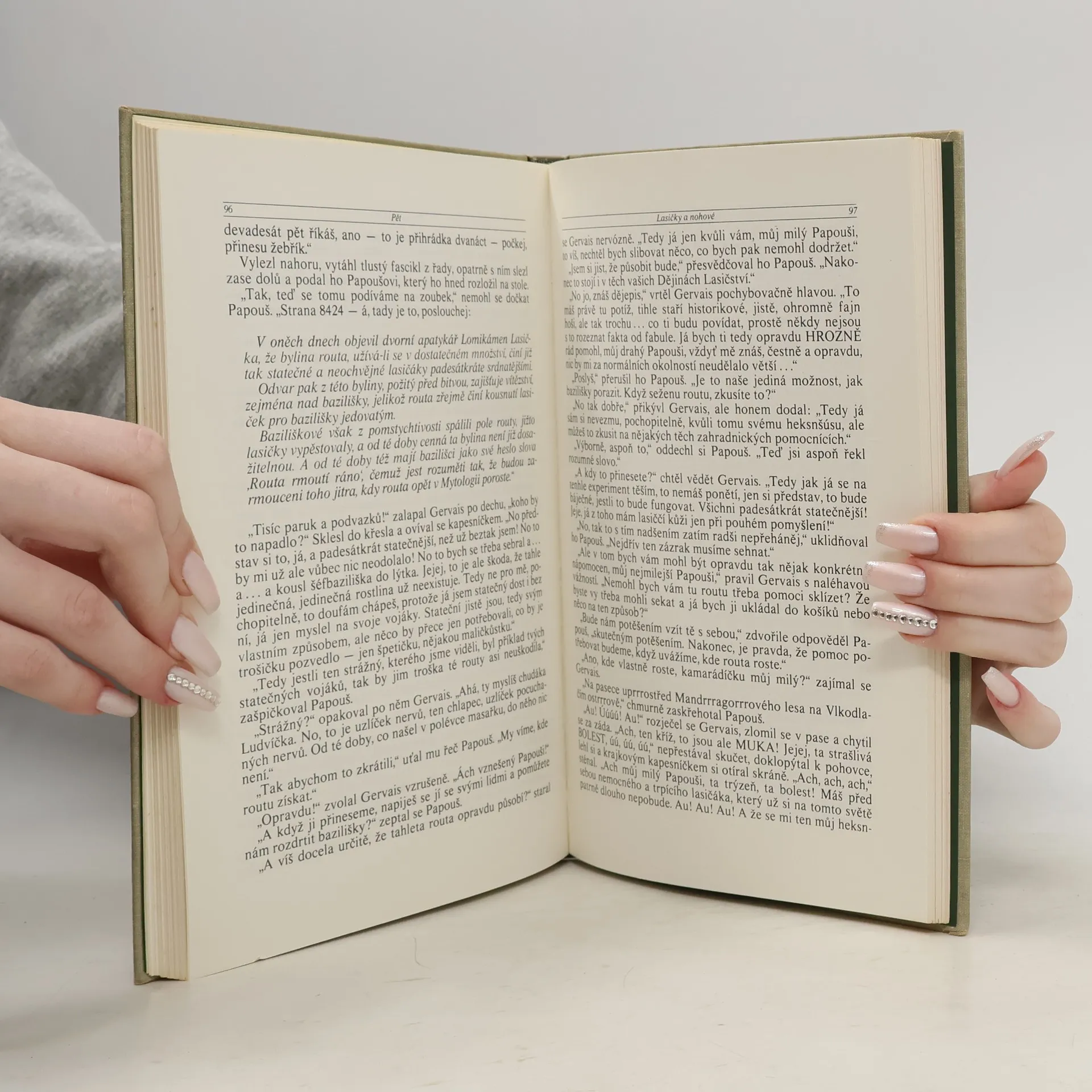 Prázdniny v Řecku právě začínají! Penelopka, Petr a Šimon si hrají na pláži, ale náhle se k nim po vlnách přiblíží velký balík, z něhož se ozývají záhadné hlasy... To vzdělaný papoušek Papouš a jeho zpívající pavoučice Dulcibela připluli hledat pomoc pro zemi Mytologii, kterou ovládli krutí baziliškové. Děti se s nimi vydávají na fantastickou pouť za laskavým čarodějem H. H., ješitnými jednorožci, bezcharakterními ropušáky a snobskými mořskými pannami. Podaří se jim získat zpátky ukradené mluvící knihy a svrhnout bazilišky? Půvabný pohádkový příběh pro děti z pera autora oblíbených příběhů o zvířatech (O mé rodině a jiné zvířeně, Chytněte mi guerézu, Ptáci, zvířata a moji příbuzní).