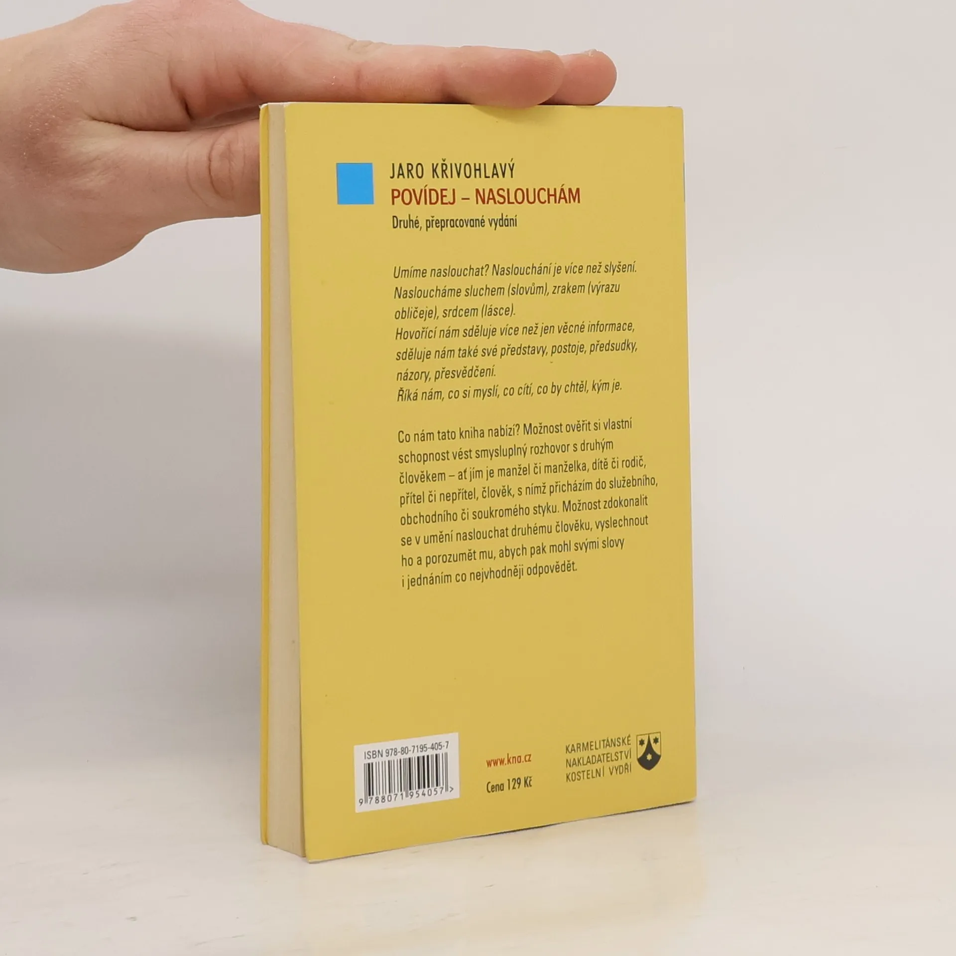 Oč jde v této knížce? Jde o to seznámit se s některými poznatky, které nám mohou pomoci v našich rozhovorech s druhými lidmi. Jde o to prověřit si – testovat – vlastní schopnost vést rozhovor s druhým člověkem – ať jím je manžel či manželka, dítě či rodič, přítel či nepřítel, někdo, s nímž přicházím do služebního, obchodního či soukromého styku. Jde o to zdokonalit se v umění naslouchat druhému člověku, vyslechnout ho a porozumět mu, abych mu mohl poté svým jednáním co nejvhodněji vyjít vstříc.