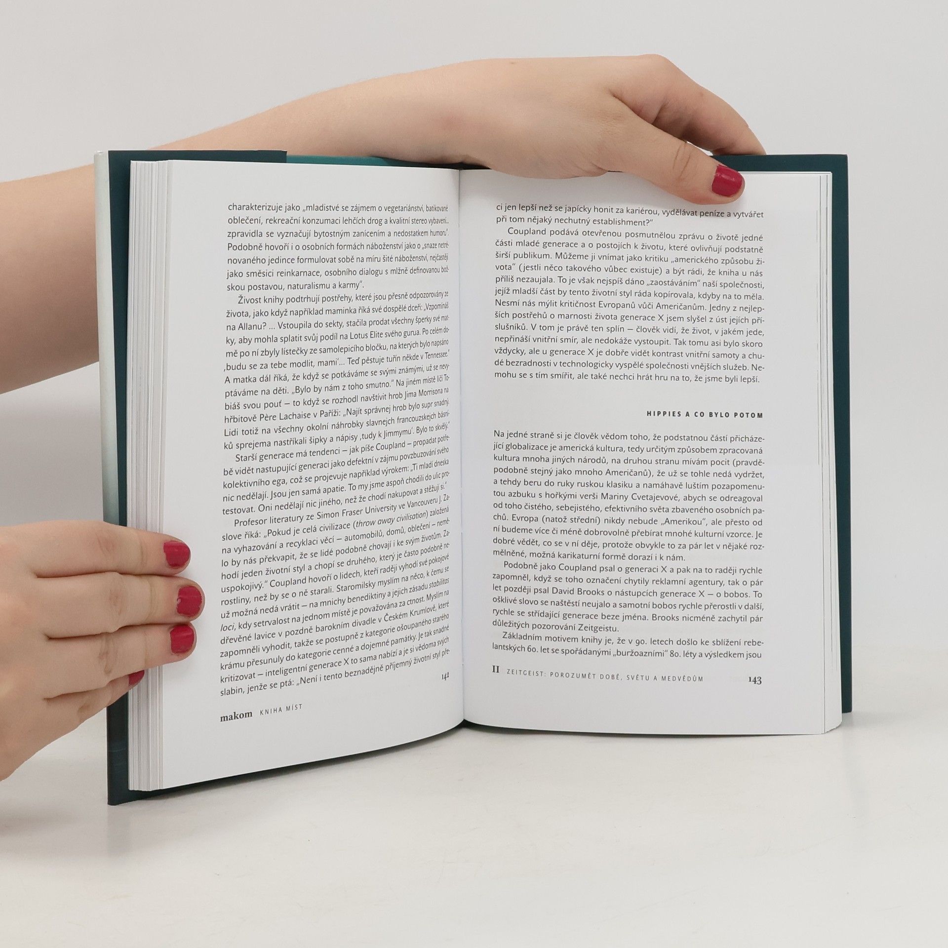 Slovo makom pochází z hebrejštiny. Znamená místo, ale je to spíš místo v srdci, protože vesmír jsou (jak se říká) hlavně vztahy. V kabale je význam slova makom ještě závažnější – představuje šesté nebe, kde se vše předurčuje. Uprostřed šestého nebe je temná propast Daat Berija, z níž vychází hlas, jenž dává poznání. Předkládaná kniha má prostší cíl. Navazuje na knihu o krajinách vnitřních a vnějších a v první části se obrací k reálným místům: k čarodějnému lesu u Kuksu, k paládiu ve Staré Boleslavi, k Vojtěšské huti na Kladně i k situacím, kdy Balkán je víc než celá Evropa. Ptáme se zde, kde žijeme a odkud pocházíme. V druhé části, nazvané Zeitgeist – duch doby, nás víc zajímá, v jaké době to vlastně žijeme a kam směřujeme. V části třetí, nazvané Bohové, buddhové a trpaslíci, se nám jedná zejména o trpaslíky, o to, co nás přesahuje a co vůbec nezapadá do každodenního života. Kniha byla nově rozšířena o čtvrtou část Poslední divočina.