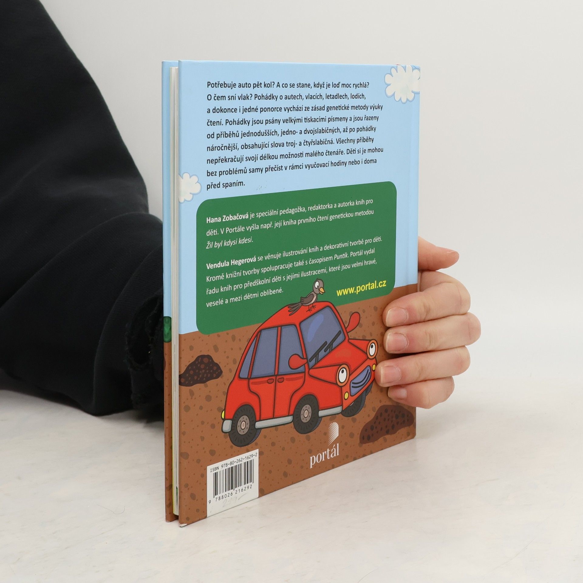 Potřebuje auto pět kol? A co se stane, když je loď moc rychlá? O čem sní vlak? Pohádky o autech, vlacích, letadlech, lodích a dokonce i jedné ponorce vychází ze zásad genetické metody výuky čtení. Pohádky jsou psány velkými tiskacími písmeny a jsou řazeny od příběhů jednodušších, jedno a dvojslabičných, až po pohádky náročnější, obsahující slova troj- a čtyřslabičná. Všechny příběhy nepřekračují svojí délkou možnosti malého čtenáře. Děti si je mohou bez problémů samy přečíst v rámci vyučovací hodiny nebo i doma před spaním.