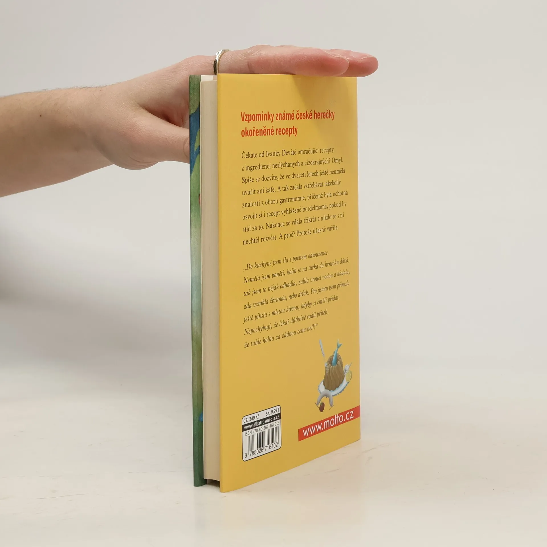 Čekáte od Ivanky Deváté omračující recepty z ingrediencí neslýchaných a cizokrajných? Omyl. Spíše se dozvíte, že ve dvaceti letech ještě neuměla uvařit ani kafe a jaké to bylo dobrodružství. A tak začala vstřebávat jakékoliv znalosti z oboru gastronomie, přičemž byla ochotná osvojit si recept i vyhlášené bordelmamá, pokud by stál za to. A hle, přesto se vdala třikrát a nikdo se s ní nechtěl rozvést. A proč? Protože úžasně vařila.