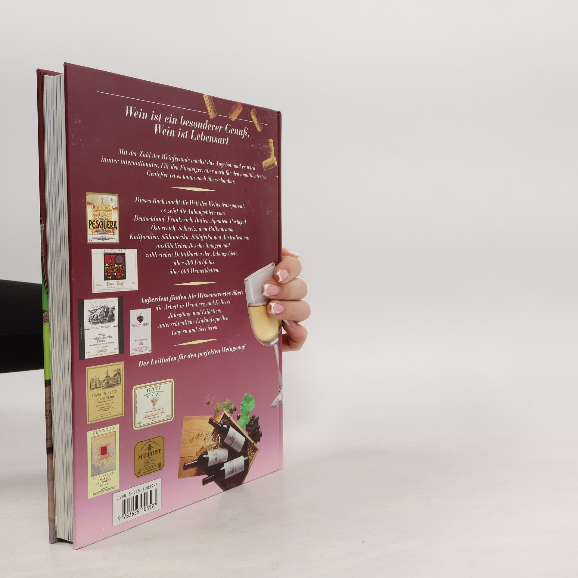 Wein ist ein besonderer Genuß, Wein ist Lebensart Die Zahl der Weinfreunde steigt mit jedem Tag. Gleichzeitig wächst das Angebot, und es wird immer internationaler. Für den Einsteiger, aber auch für den ambitionierten Genießer ist es kaum noch überschaubar. Dieses Buch macht die Welt des Weins transparent: Präsentiert werden die Weinregionen von: Deutschland, Frankreich, Italien, Spanien, Portugal, Österreich, Schweiz, Balkanraum, Kalifornien, Südamerika, Südafrika, und Australien mit ausführlichen Beschreibungen, über 100 Detailkarten der Anbaugebiete, über 300 Farbfotos und über 600 Weinetiketten. Außerdem finden Sie Wissenswertes über die Arbeit in Weinberg und Kellerei, Jahrgänge und Etiketten, unterschiedliche Einkaufsquellen, Lagern und Servieren, Geschmack und Gesundheit. Das Weinbuch bündelt Erfahrung und Kompetenz. Der Leitfaden für den perfekten Weingenuß.