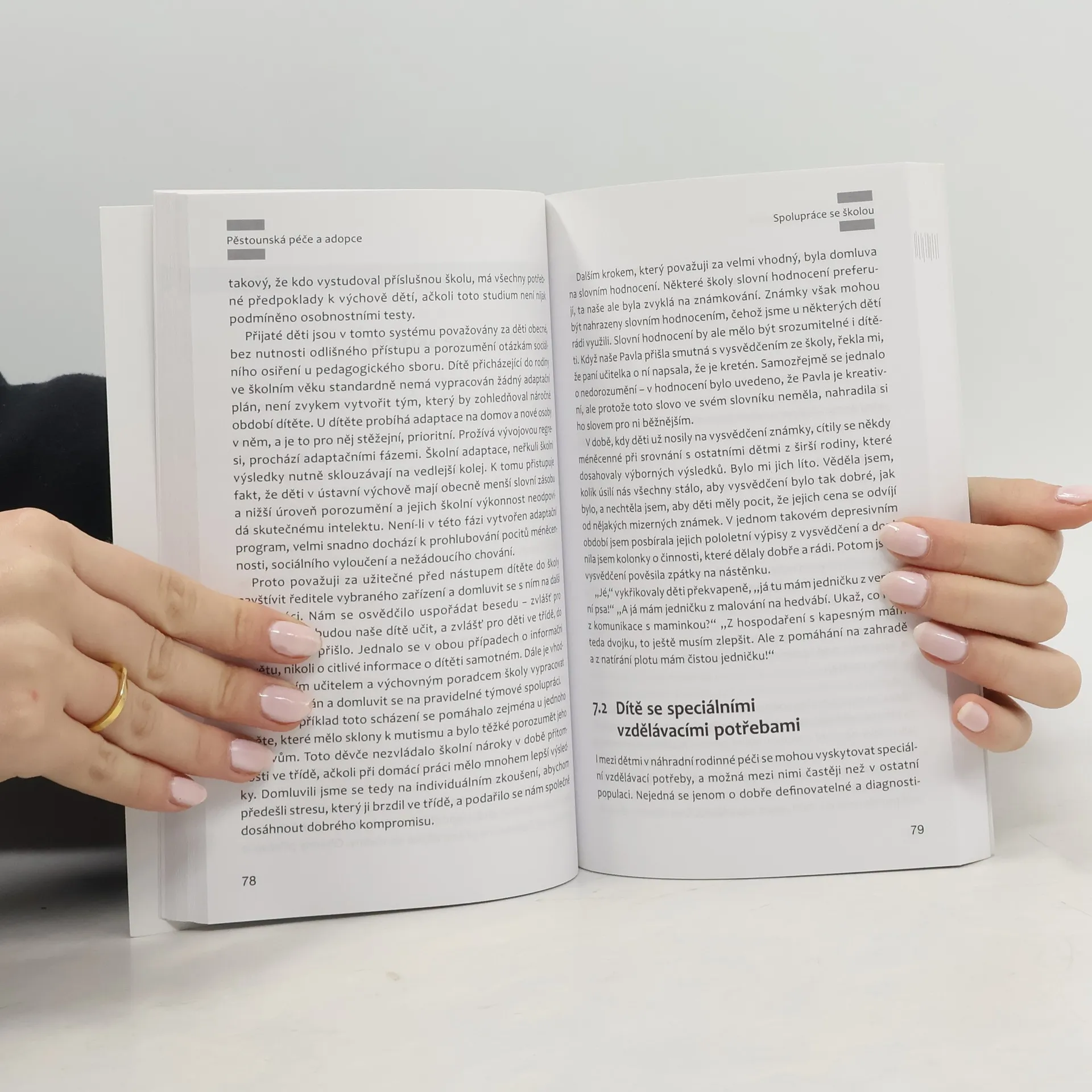 Praktické rady pro rodiče - zájemce o pěstounskou péči či adopci. Základy náhradní rodinné péče, rozdíly mezi jejími jednotlivými formami a přiblížení celého procesu svěření dítěte do rodiny osvojitelské či pěstounské. Neocenitelné jsou osobní autorčiny zkušenosti z pohledu rodiče: praktické rady z tzv. adaptační fáze sžívání se dítěte s novou rodinou. Autorka se nevyhýbá citlivým tématům - například přijetí etnicky odlišného dítěte, dítěte s tělesným handicapem, s vývojovými a mentálními postiženími. Osobní praktické zkušenosti sděluje i v otázkách dětí o jejich biologické rodině, otevřeně hovoří o právu pěstounů na únavu, o administrativních obtížích, nedostatečné odborné podpoře rodin. Nechybí osobní zkušenosti dnes již dospělých dětí, které na svůj pobyt v pěstounské péči vzpomínají.