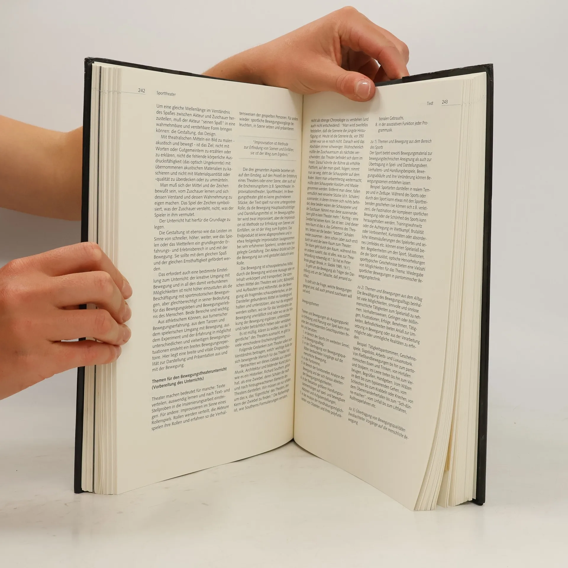 Das Buch behandelt alle zentralen Themen der Neuen Sport- und Bewegungskultur und verweist mit Kurz-Rezensionen auf die wichtigste Literatur der letzten Jahre. Es informiert mit 50 Beiträgen und 36 Autoren auf 500 Seiten über die folgenden Bereiche: - Spielkultur - Sporttheater - Kreativität - Körpererfahrung - Bewegungserlebnis - Bewegungserziehung - Bewegungsraum.