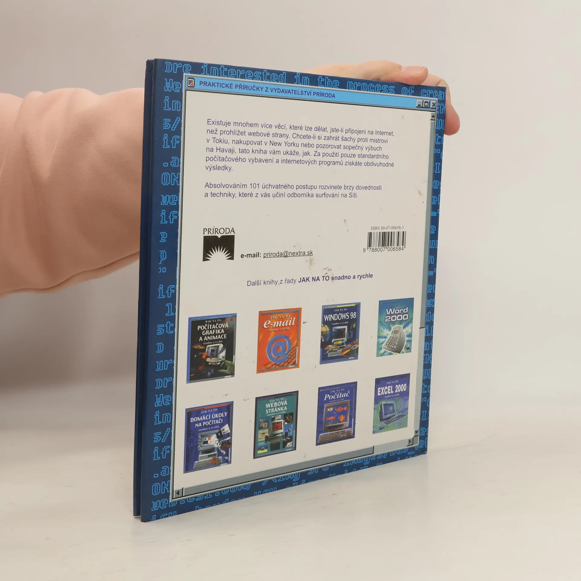 Sto a jedna praktická rada, usnadňující lepší využití Internetu. Příručka seznamuje čtenáře se základními pojmy Internetu a s možnostmi připojení se k němu. Radí jak používat elektronickou poštu a jak stahovat programy ze Sítě. Kniha dále přináší množství zajímavých internetových adres k nejrůznějším lidským činnostem s důrazem na ekologii. Zvláštní kapitoly jsou věnovány debatování či nakupování na Síti. Závěr tvoří netové adresy k navrhování vlastní webové stránky a k protivirové ochraně. Publikace je provázena četnými barevnými ilustracemi včetně barevných snímků domovských stránek většiny pojednávaných webovských adres a doplněna slovníčkem pojmů a předmětovým rejstříkem
