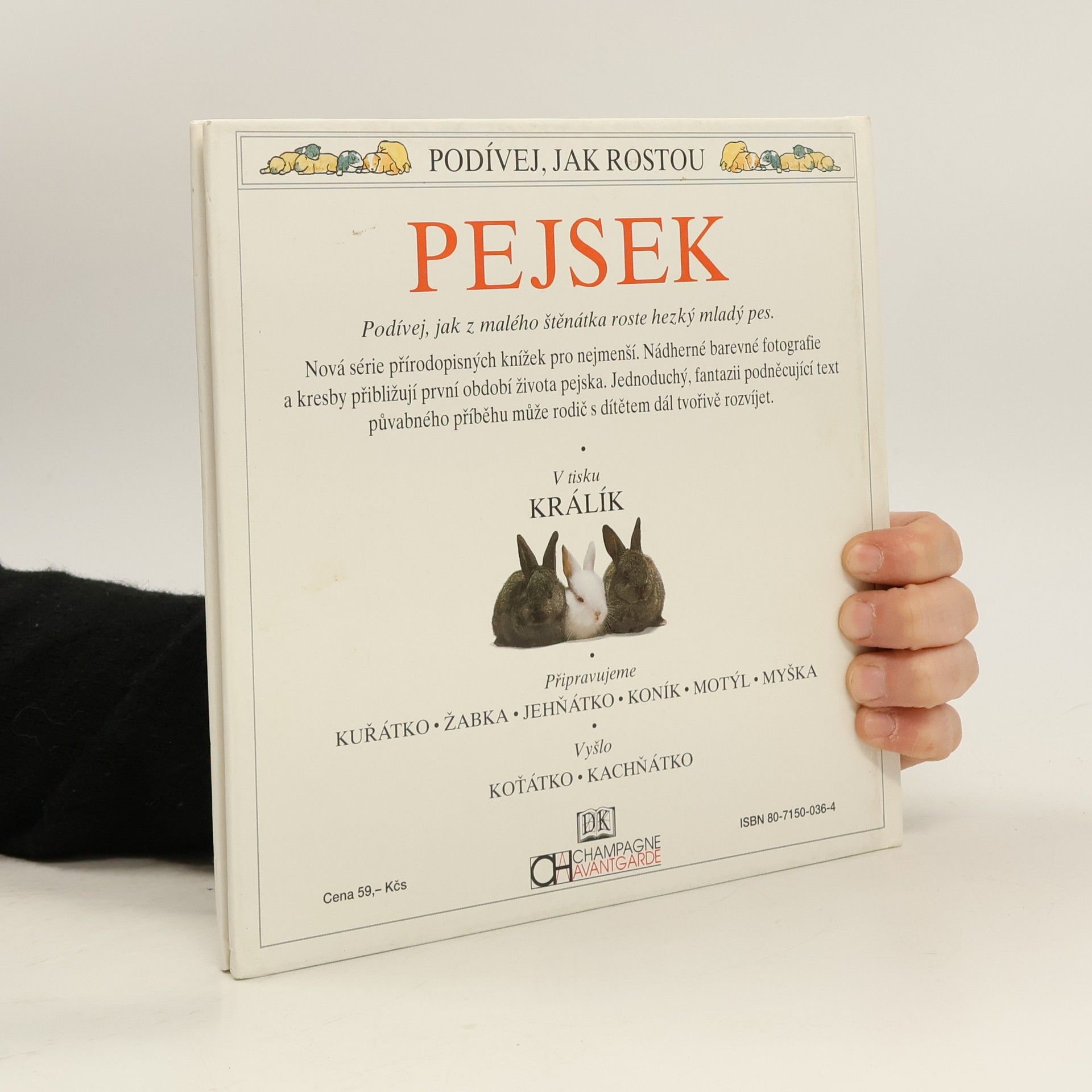 Podívej, jak z malého štěňátka roste hezký mladý pes. Nová série přírodopisných knížek pro nejmenší. Nádherné barevné fotografie a kresby přibližují první období života pejska. Jednoduchý, fantazii podněcující text půvabného příběhu může rodič s dítětem dál tvořivě rozvíjet.