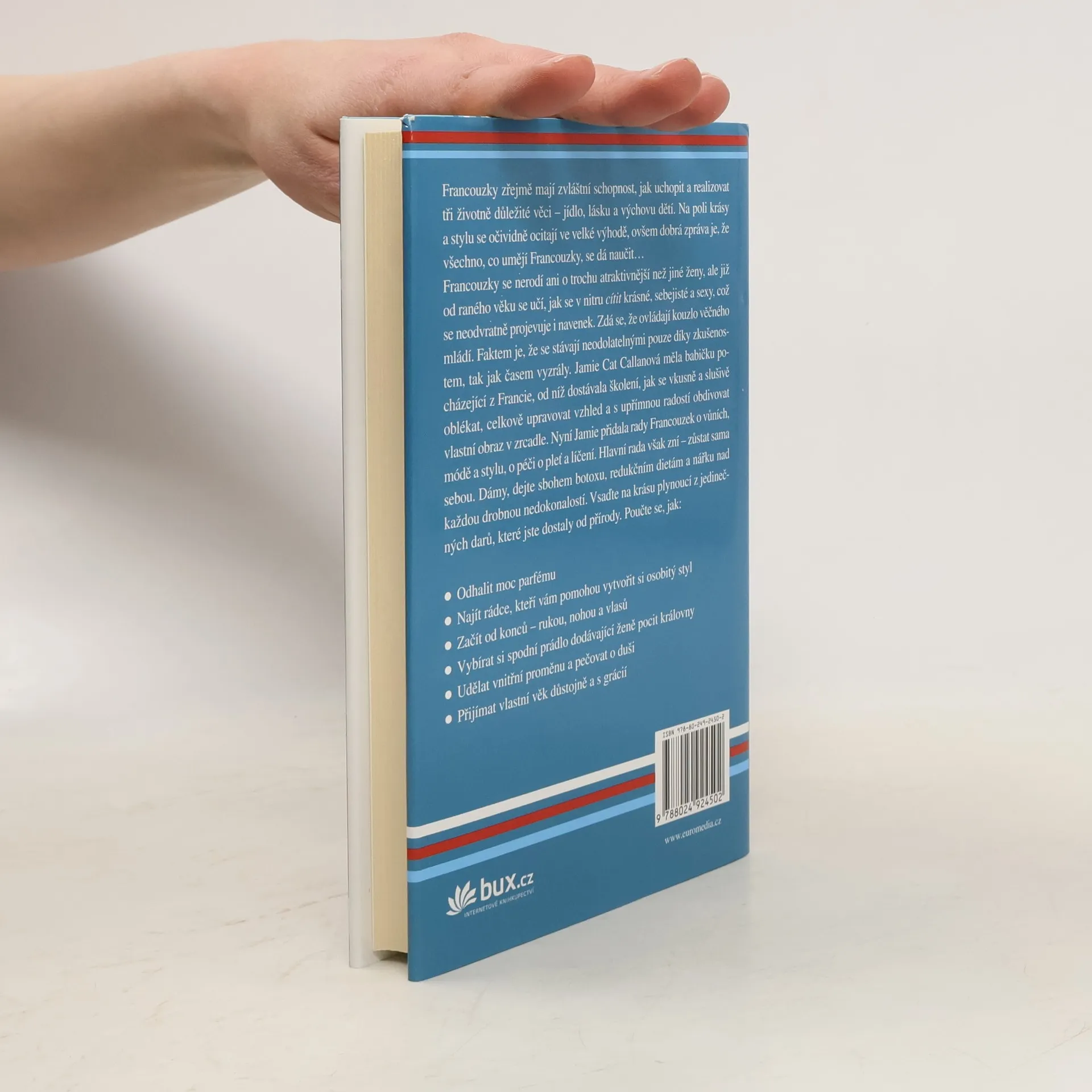 Dámy, dobrá zpráva je, že všechno, co umějí Francouzky, se můžete naučit. Zdá se, že ovládají kouzlo věčného mládí. V nové knize Jamie shromáždila rady Francouzek o vůních, módě a stylu, o péči o pleť a líčení: jak odhalit moc parfému, vytvořit si osobitý styl, začít od rukou, nohou a vlasů, vybírat si božské spodní prádlo, udělat vnitřní proměnu a přijímat vlastní věk s grácií. Dejte sbohem botoxu, redukčním dietám a pláči nad každou drobnou nedokonalostí. Vsaďte na krásu plynoucí z darů, které jste dostaly od přírody.