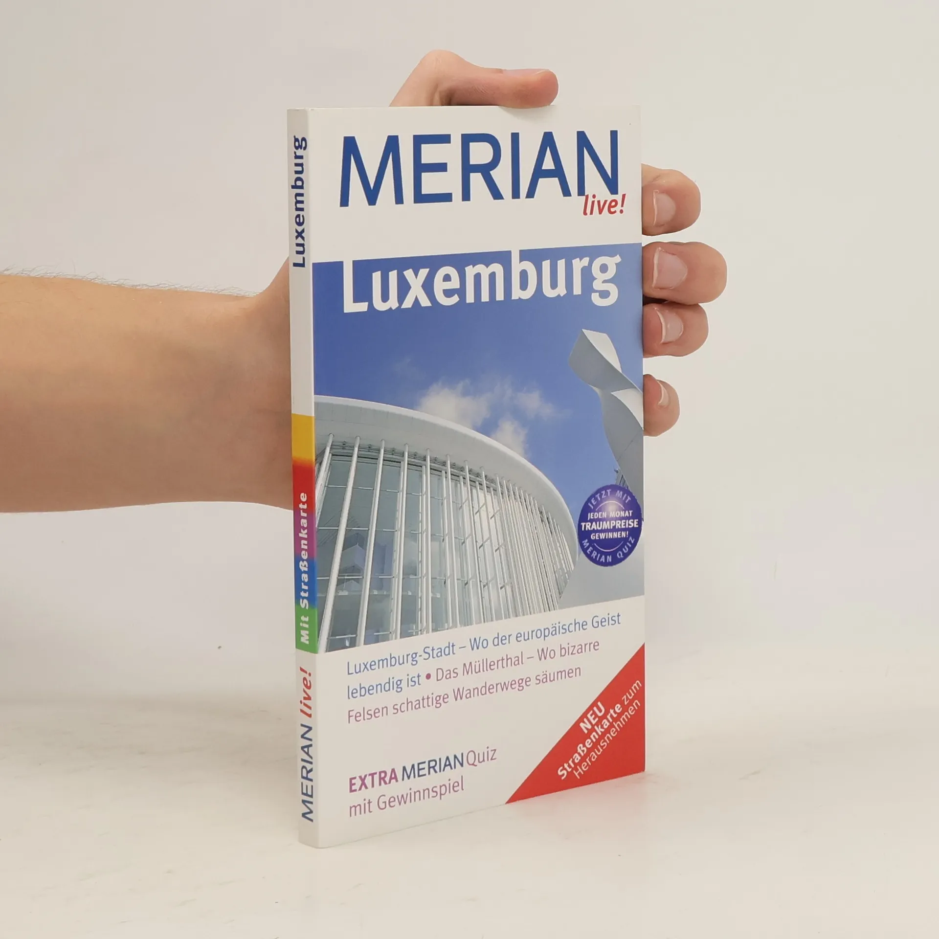 Mehrfach ausgezeichnet als bester Kompakt-Reiseführer: 1. Platz ITB BuchAward! Jetzt neu mit herausnehmbarer Straßenkarte zusätzlich zum Kartenatlas. Extra: MERIAN-Quiz mit Gewinnspiel! Eine Auswahl aus dem Inhalt des MERIAN live! Luxemburg: Die schönsten Orte und Regionen: Luxemburg-Stadt - Herrliche Lage und kontrastreiche Architektur Der Norden - Waldlandschaft mit Tälern Die Kleine Luxemburger Schweiz Das Moseltal - Vom Weinbau geprägt Der Süden - Industrieschlote und Prachtfassaden Die vier spannendsten Routen und Touren: Durch die Ardennen - Der Norden ist hügelig und grün Im Tal der Burgen und Schlösser - Sieben auf einen Streich Auf der ehemaligen Eisenbahntrasse nach Belgien - Unsichtbare Grenzen passieren Ca. 60 Farbfotos, herausnehmbare Straßenkarte plus 6 Seiten Kartenatlas, 1 Übersichtskarte, 2 Stadtpläne, 1 Detailplan, Sprachführer und Essdolmetscher, MERIAN-TopTen und MERIAN-Tipps. MERIAN-Spezial-Thema: Fotoausstellung »The Family of Man«