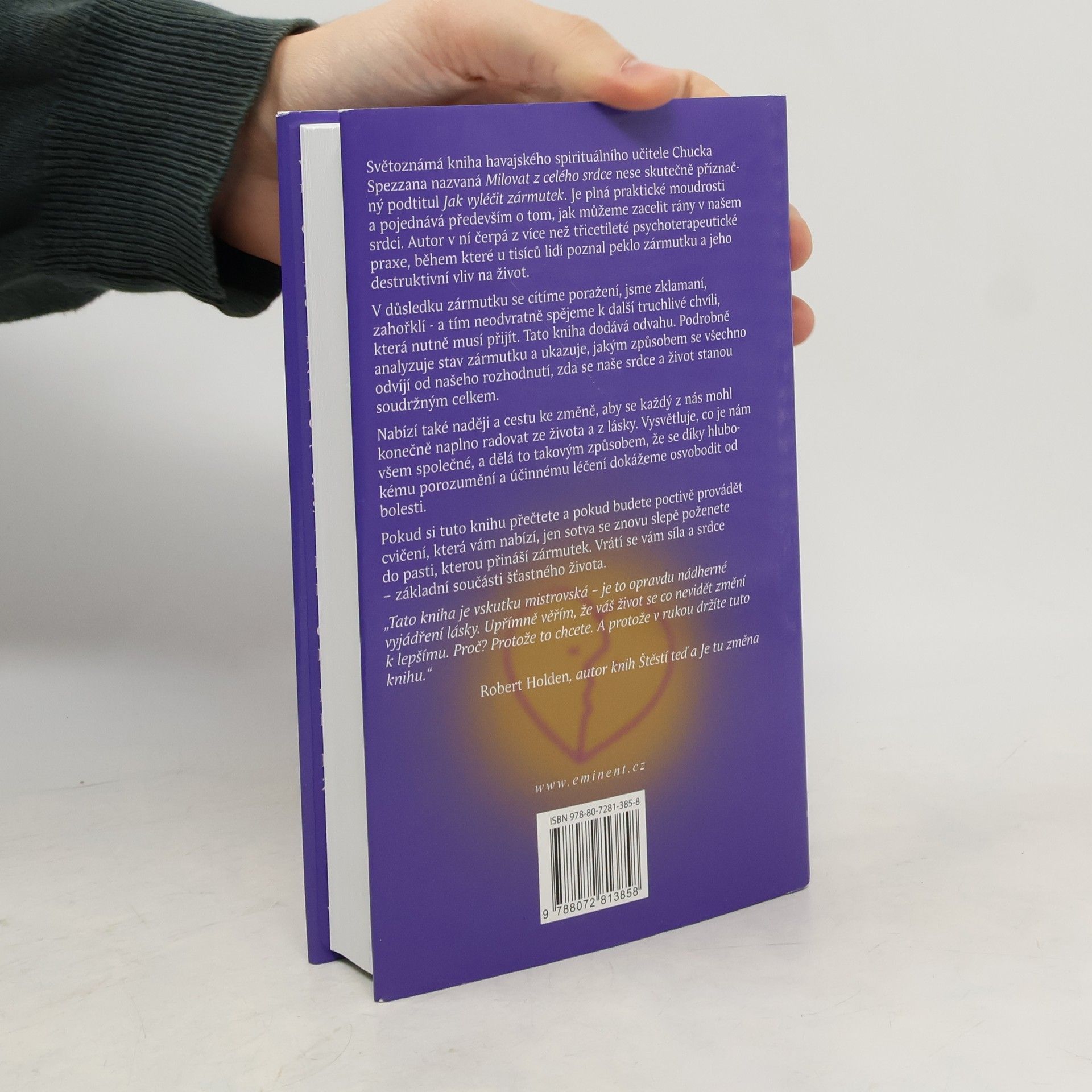 Světoznámá kniha havajského spirituálního učitele Chucka Spezzana nazvaná Milovat z celého srdce nese skutečně příznačný podtitul Jak vyléčit zármutek. Je plná praktické moudrosti a pojednává především o tom, jak můžeme zacelit rány v našem srdci. Autor v ní čerpá z více než třicetileté psychoterapeutické praxe, během které u tisíců lidí poznal peklo zármutku a jeho destruktivní vliv na život.